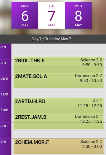 Sometimes caregivers are confused by the text that may be sent during the day claiming a pupil is absent so this is an interpretation of each colour. If the lesson is in blue, it means the teacher has not yet submitted their roll. If it is green, the student is present in class. Orange (looks a bit yellow in the image) means the student was late to class. A red means the student was not present in the class.
