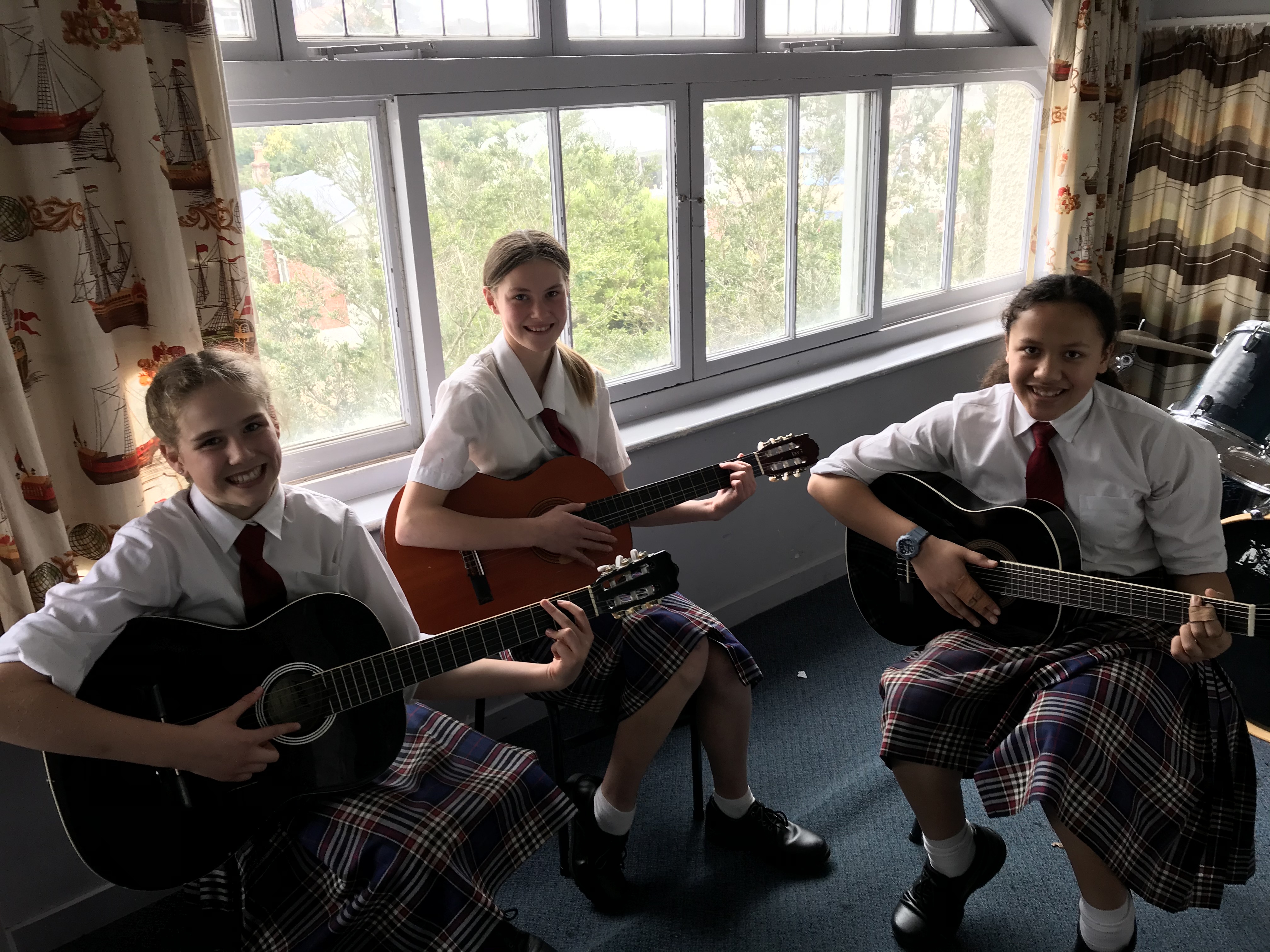 They have mastered how to play chords on keyboards/pianos and guitars, now they are using these new skills to create the base of their own compositions. There is a range of styles from rock (Brent and Oscar), singer/songwriter acoustic (Anamika, Hannah, and Jessica), solo piano (Aryan), and computer based compositions using the midi interfaces with keyboards and guitars (Luca).