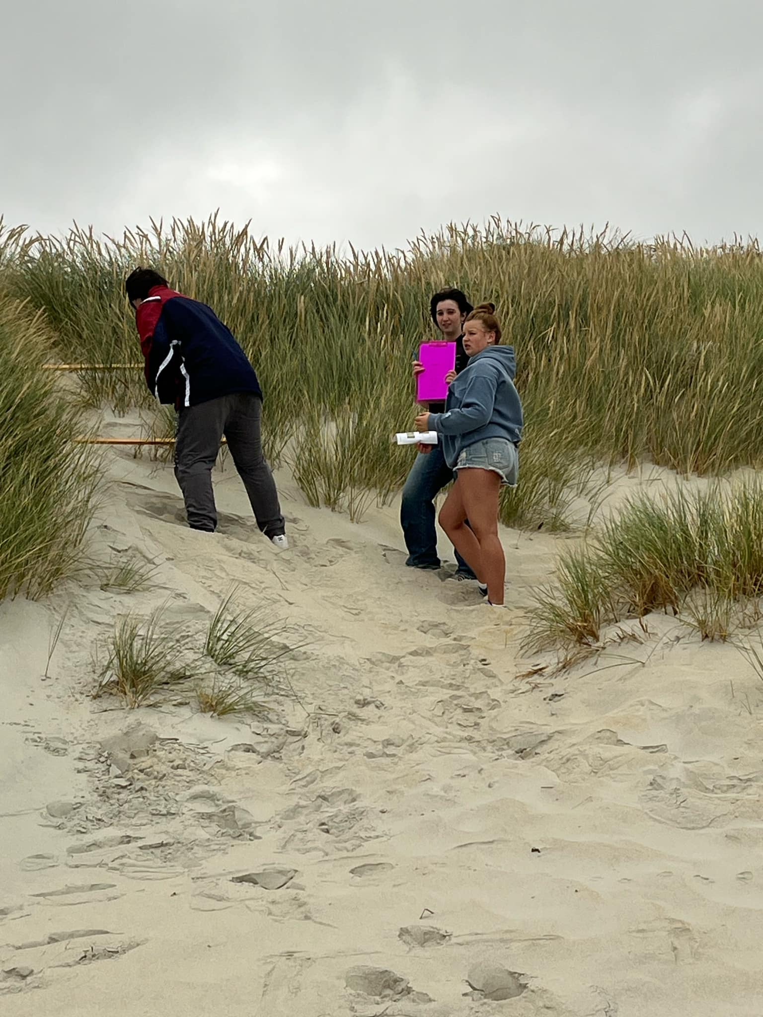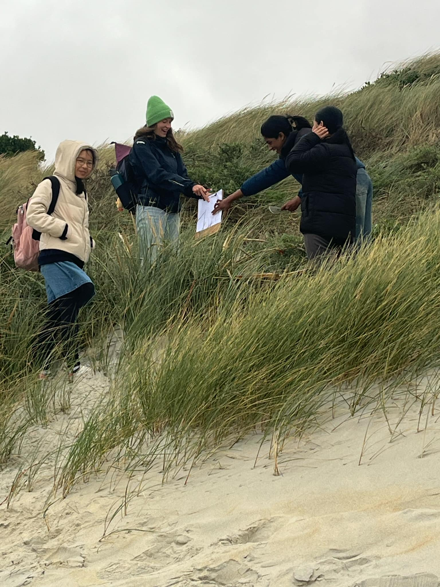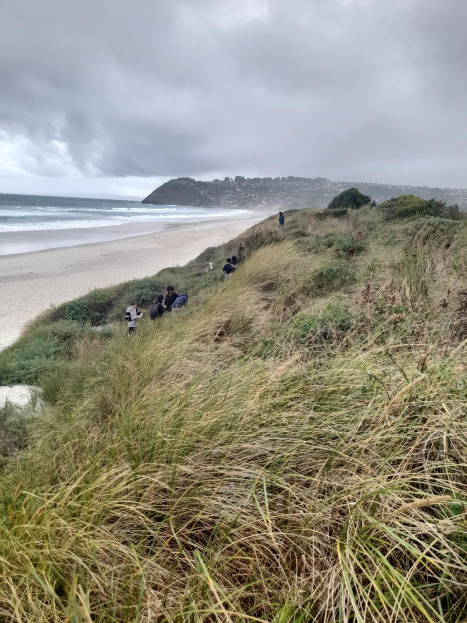 Year 12 Biology students braved the harsh coastal Otago elements in the name of Science on Monday March 3rd. Despite gloomy conditions, wind and rain, Mrs Cooney and Ms Lach’s classes scaled steep dunes and traipsed through treacherous vegetation along transects in order to collect data for their upcoming internal assessment.