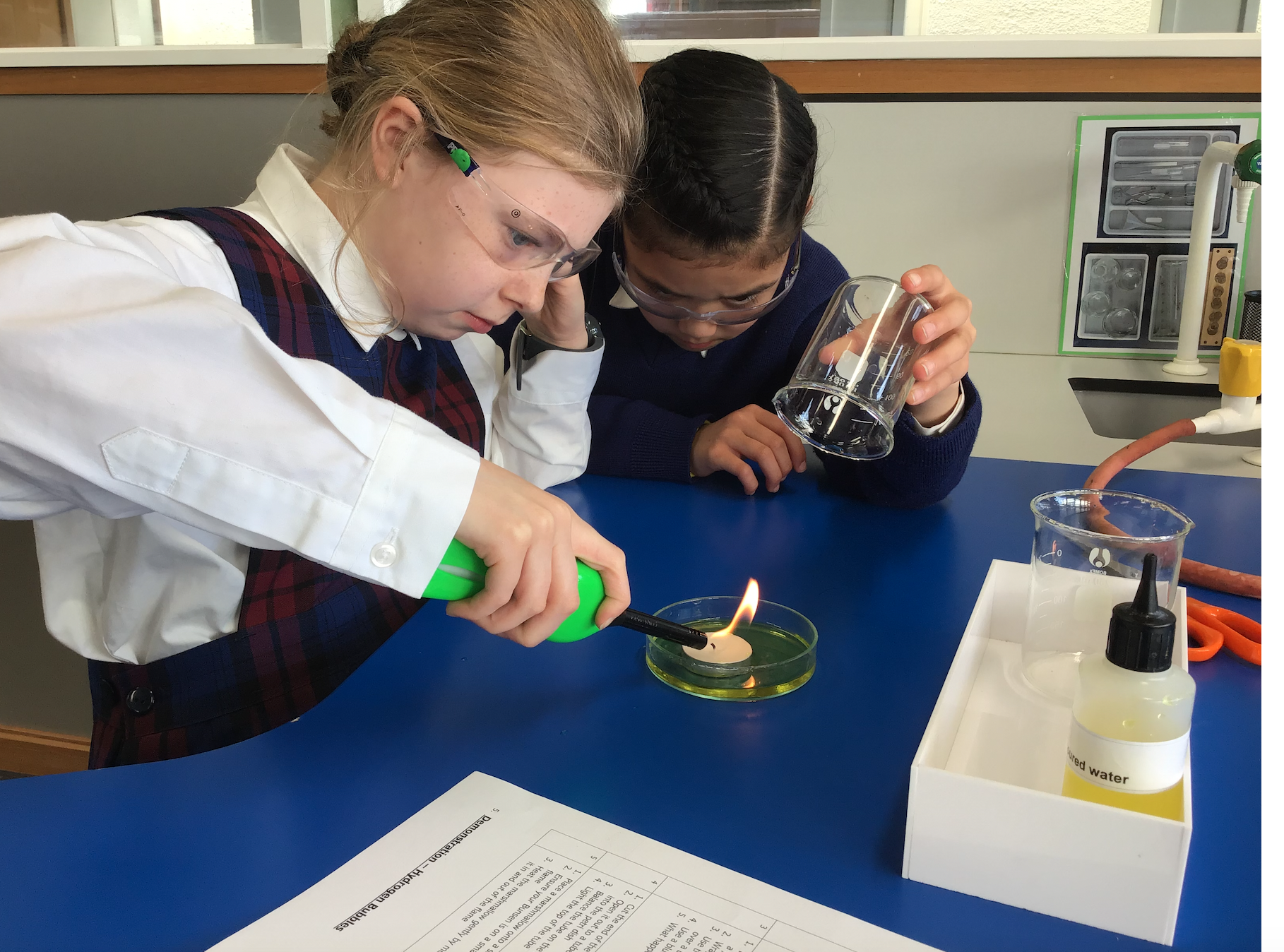 After the digital technology session, the class blew off some steam (he he) in the Christian Brother's Gymnasium with 7OCN. A delicious pizza lunch was then enjoyed by our visitors before heading to the science laboratories. Continuing with the volatile theme, Mrs Kerron Thomson and students then conducted a series of combustible experiments.