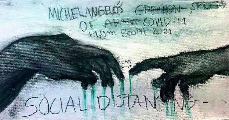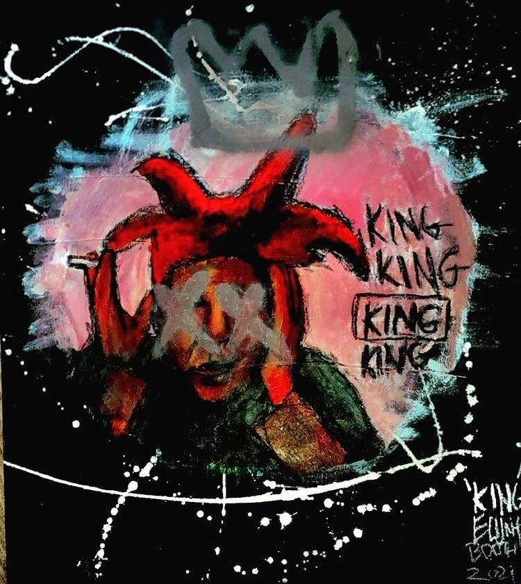 Elijah draws his inspiration from artists of the past, things going on around him, and issues of importance. He is also influenced heavily by Basquiat, with his use of the crown often featuring in his own work - as a way to pay homage, to reflect on greatness, and to strive for more.