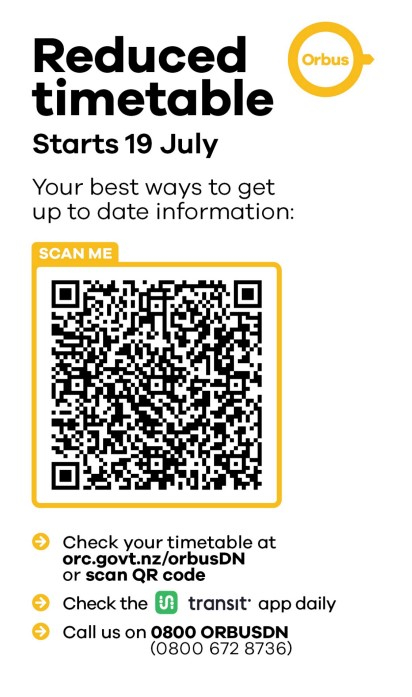 In Dunedin, the reduced timetable will operate on weekdays, with normal weekend services running.