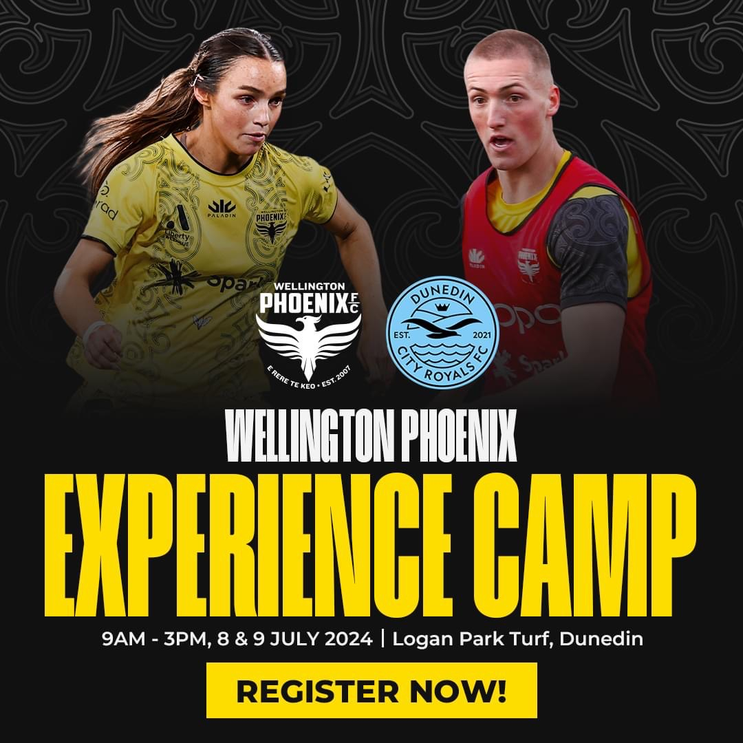 We are thrilled to announce that the Wellington Phoenix will be hosting an Experience Camp in Dunedin on July 8th and 9th, located at Logan Park Turf Dunedin, running from 9am to 3pm.