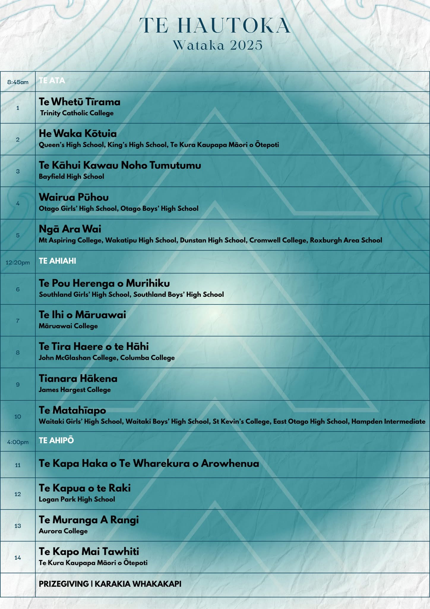 Te Hautoka is the biennial Ōtākou/Murihiku secondary school kapa haka competition. This year, a record-breaking 14 rōpū representing 29 different kura from around our rohe will be participating! The groups are competing for two spots that are available for next year's national competition, which is being held in Tauranga.