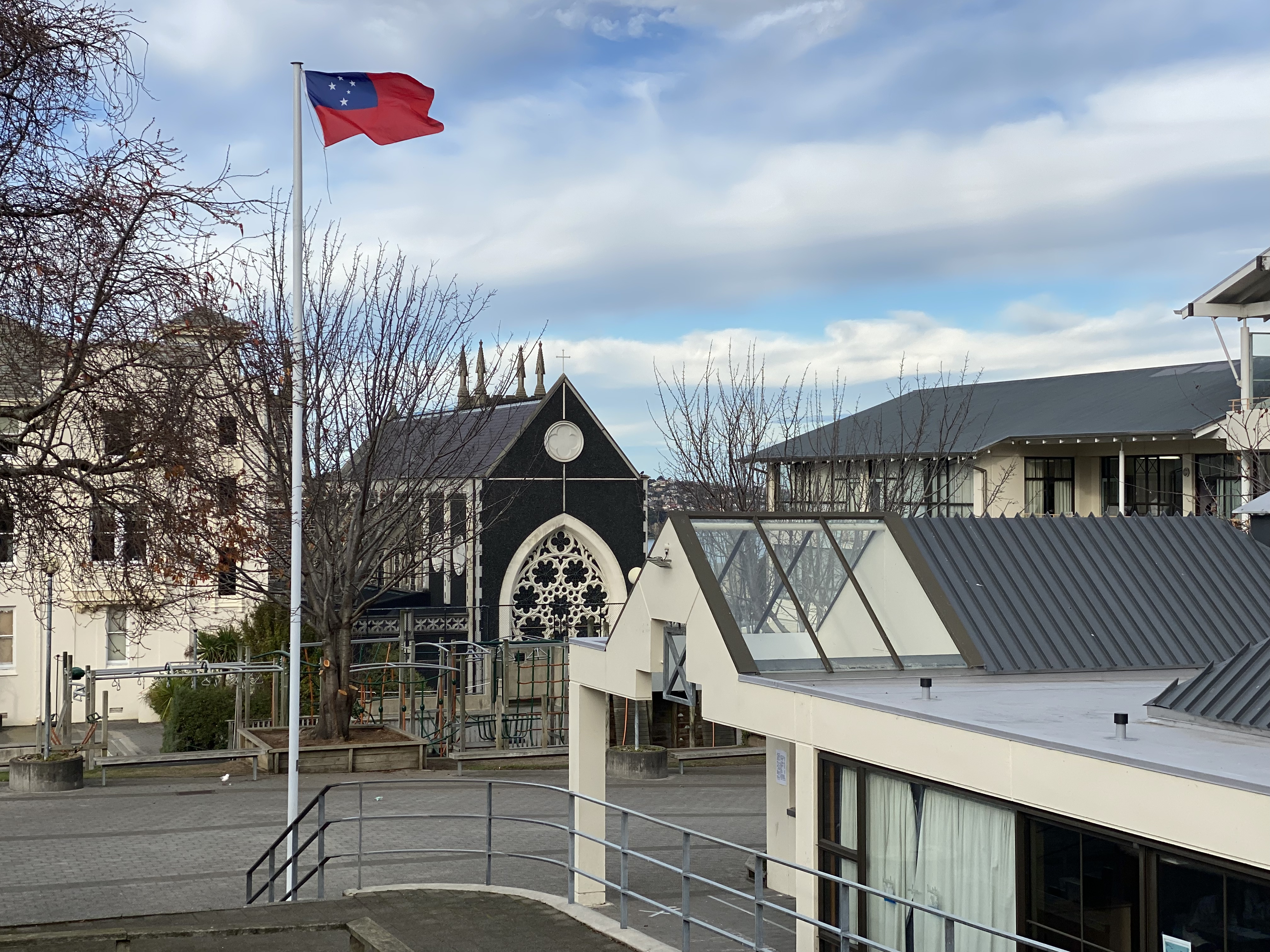Fr Hook blessed the flag and those gathered, a shortened Rosary was prayed for Samoa and the Samoan national anthem was sung while the flag was being raised.