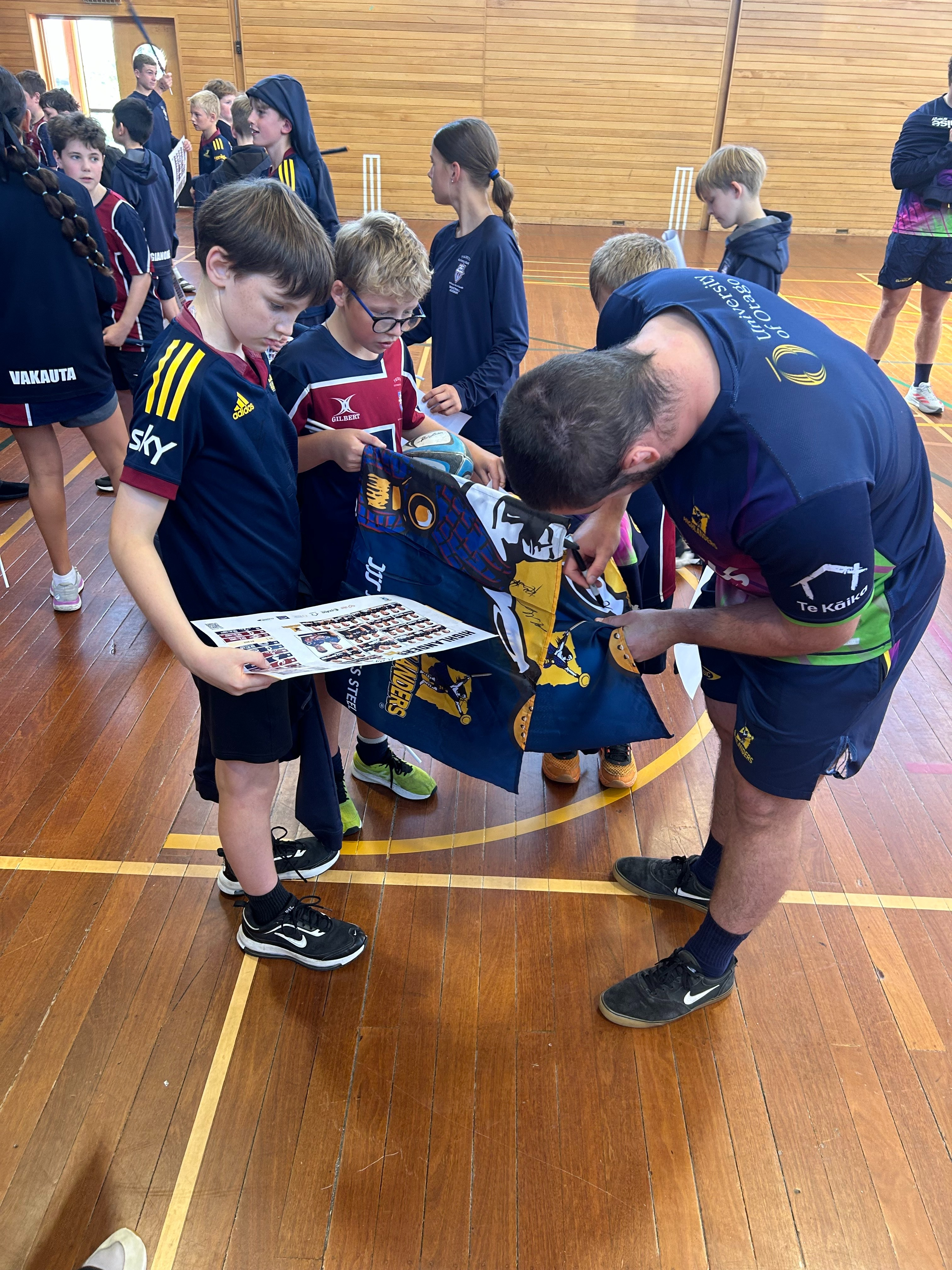 On Thursday, March 13th, the year 7 & 8 students had a special opportunity to have an hour-long session with some Highlanders. They had an amazing time playing team-building games and drills, they also got some free merchandise from the players!!