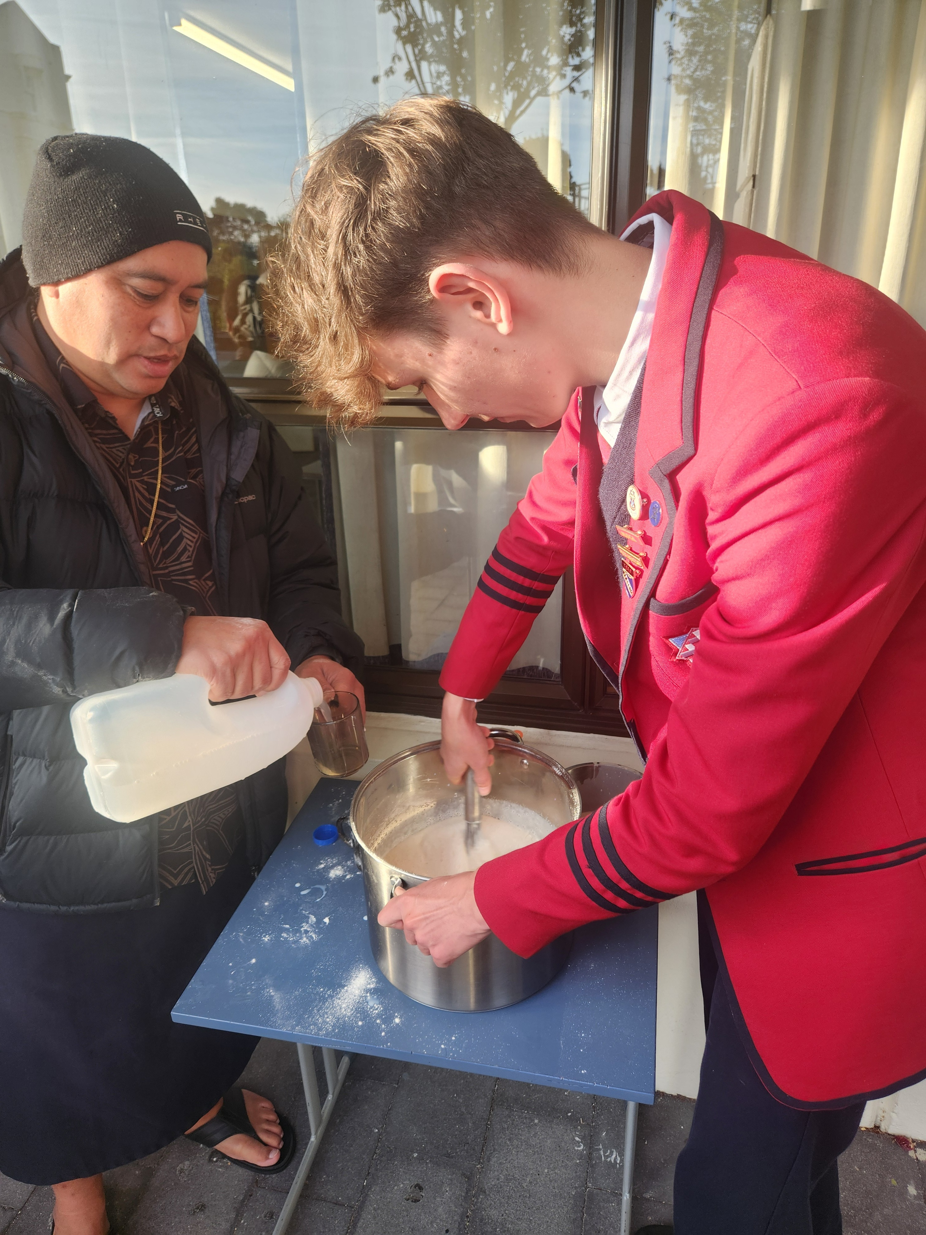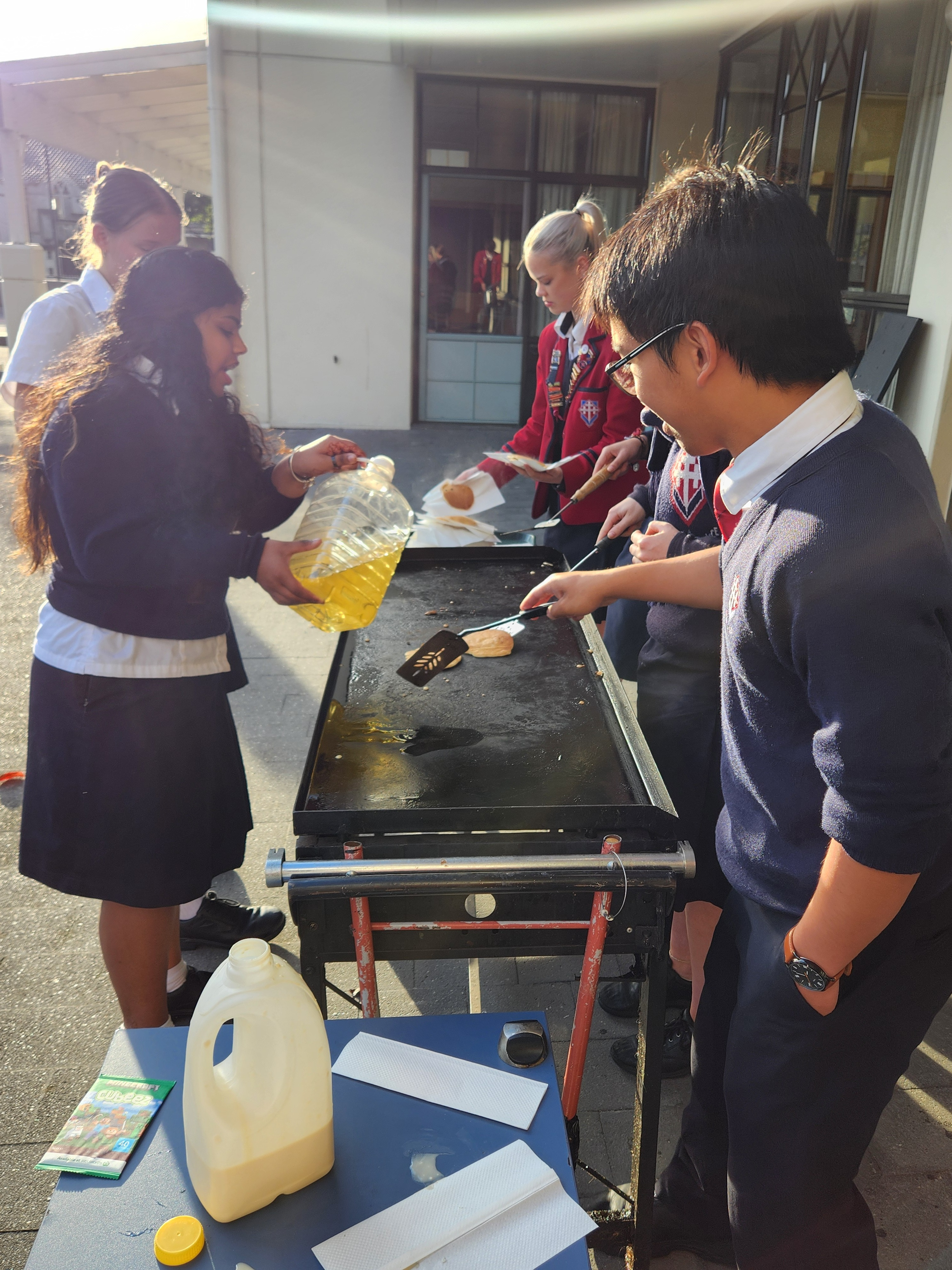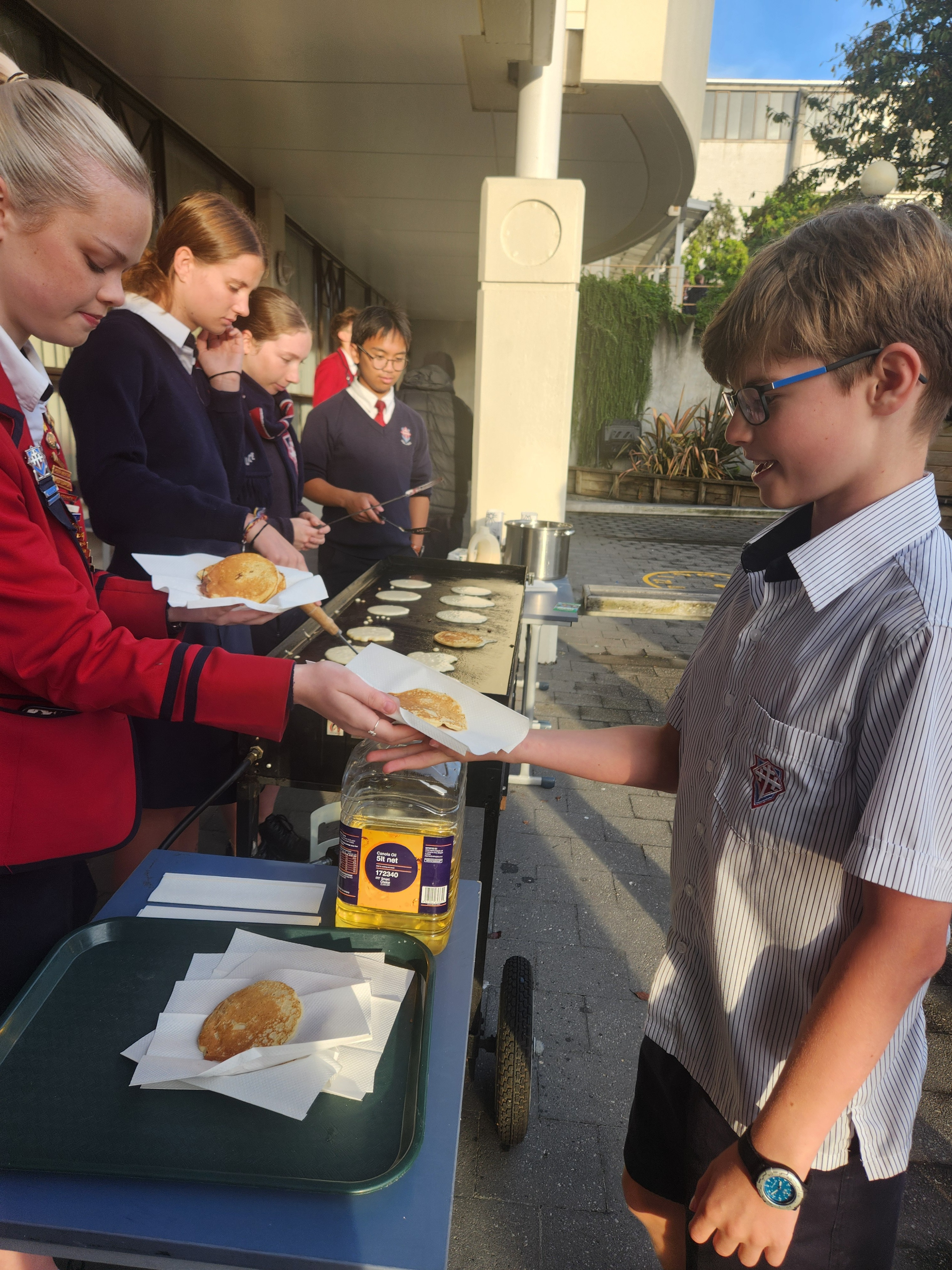 Our Prefect team, as well as some other keen Year 13 helpers and Moananu Tili, did a fantastic job serving pancakes to our junior students, who were very happy to have a nice breakfast before starting the day.