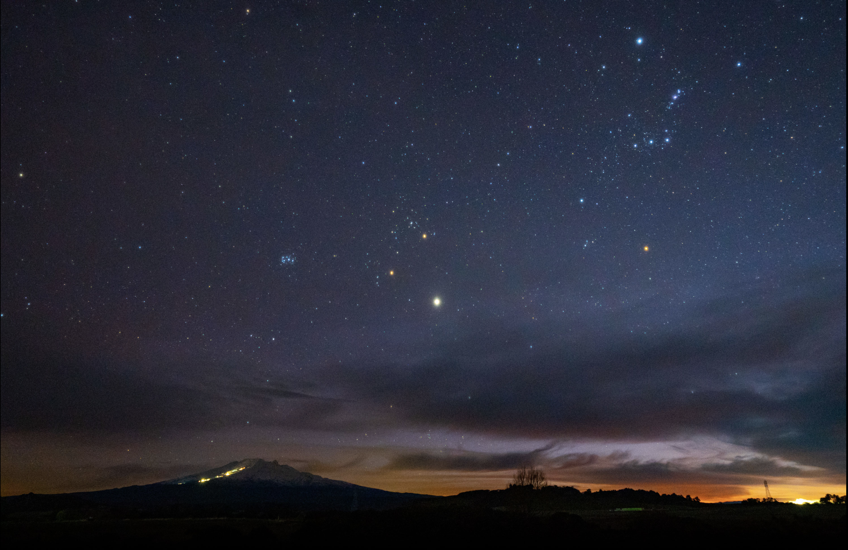 The rising of Matariki in the winter is a sign that the shorter days are coming to an end, and the longer days of spring and summer are on their way. For Māori in the past, this signalled that they would soon be able to return to food-gathering. The nine stars were considered by some as signs for the year to come that could be interpreted to gain information about mahika kai (food gathering) and the weather. Matariki can be found by first locating Tautoru (Orion's Belt) and then tracing the line of these three stars to the north. If you look closely, you might see a faint sprinkle of tiny dots that is about the same width as Tautoru. This is the Matariki star cluster.