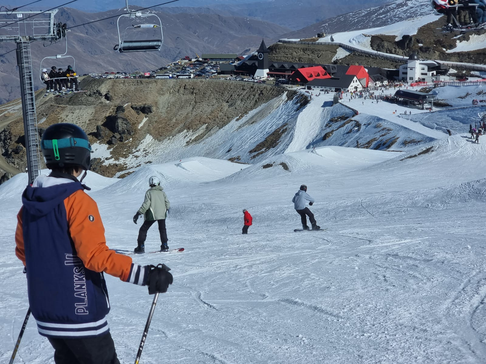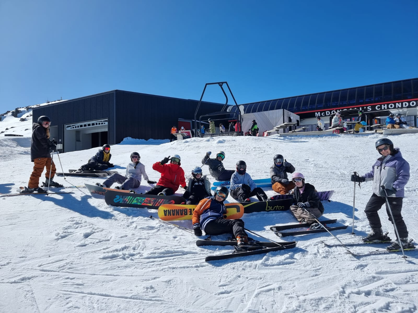 We stopped in Alexandra for tea and arrived at the holiday park in Wanaka just after 8.30pm. We rose at six on Saturday and Sunday and were up at the slopes just before 8am. There were cloudless blue skies on both Saturday and Sunday. Some Year 11s snowboarded while others skied and as you can imagine there were some spectacular crashes!