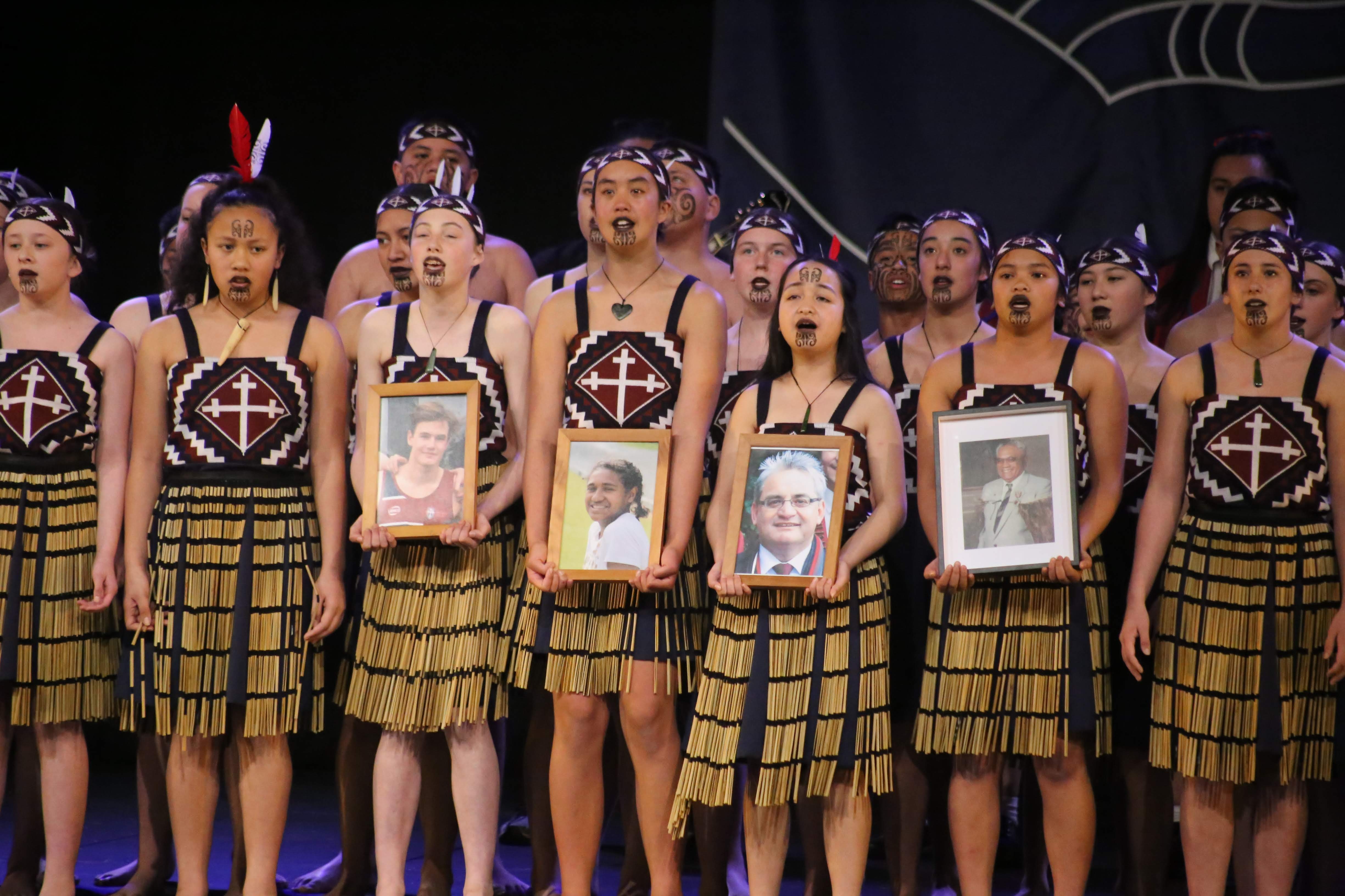 Packed with emotion, polish and flare, the group which mainly consists of Year 7 & 8 students, performed beautifully. The opening waiata Te Piki Kōtuku was our dedication song. We remember with love those people in our school community that have passed away. Portraits of Karaka Roberts (grandfather of tutor Piata Rāpata-Hanning), Mr O'Brien, Peter Sewell and Ana Qimaqima were displayed. The next songs were Aue Te Aroha and Whakataka te Hau. The bracket finished with the mighty Kavanagh College school haka!