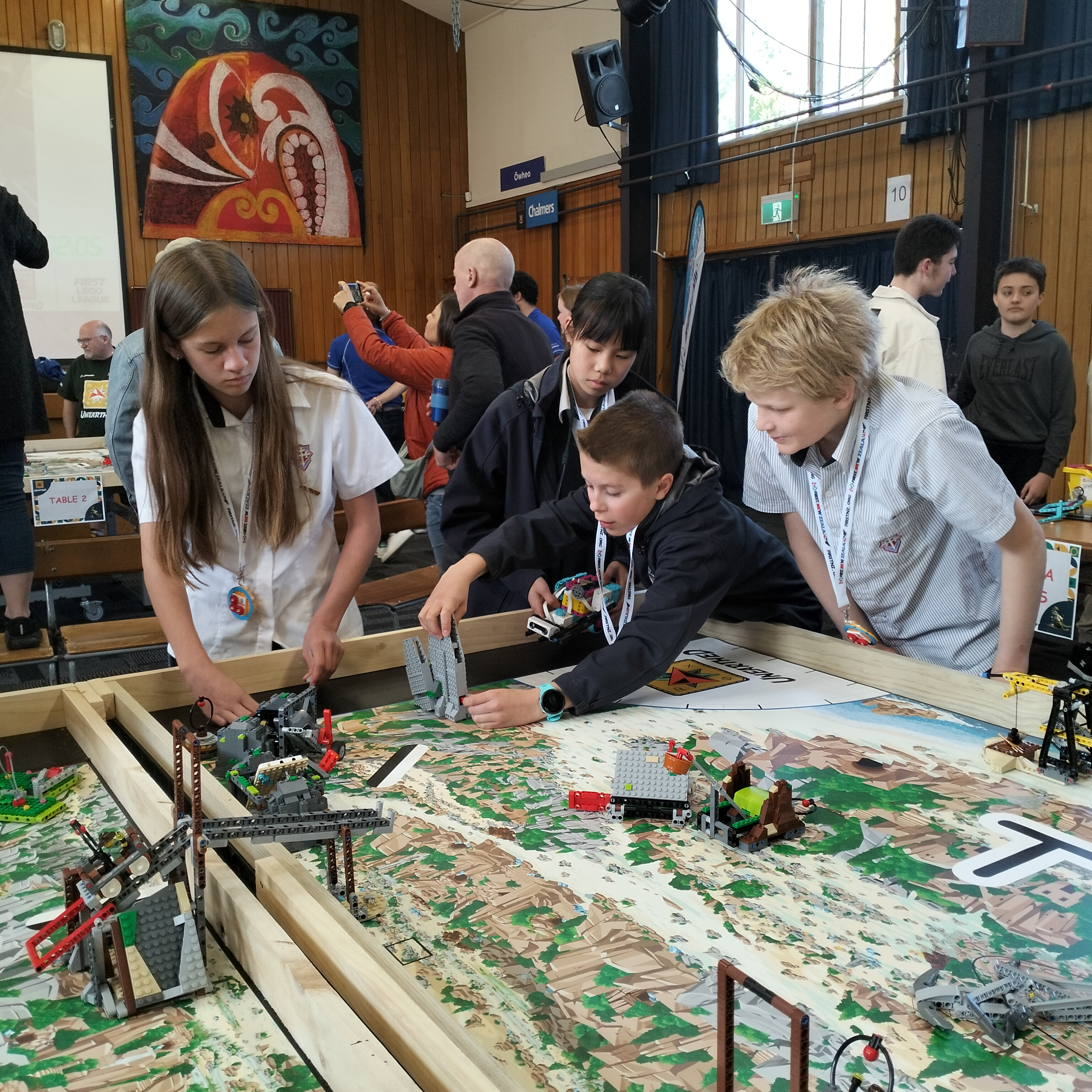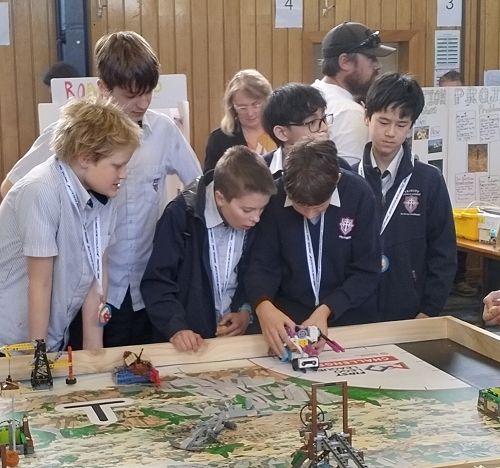 On Saturday 1st November an intrepid group of first-footers competed in the inaugural First Lego League Robotics competition in the DNI school hall. With a dozen teams and 150 people in the hall, they started strongly in the robotics games, gaining convincing scores and showing some early talent. Working hard through the day to improve their robot design and strategies, they were let down in the third round by a couple of rogue moves by their little Lego friend.