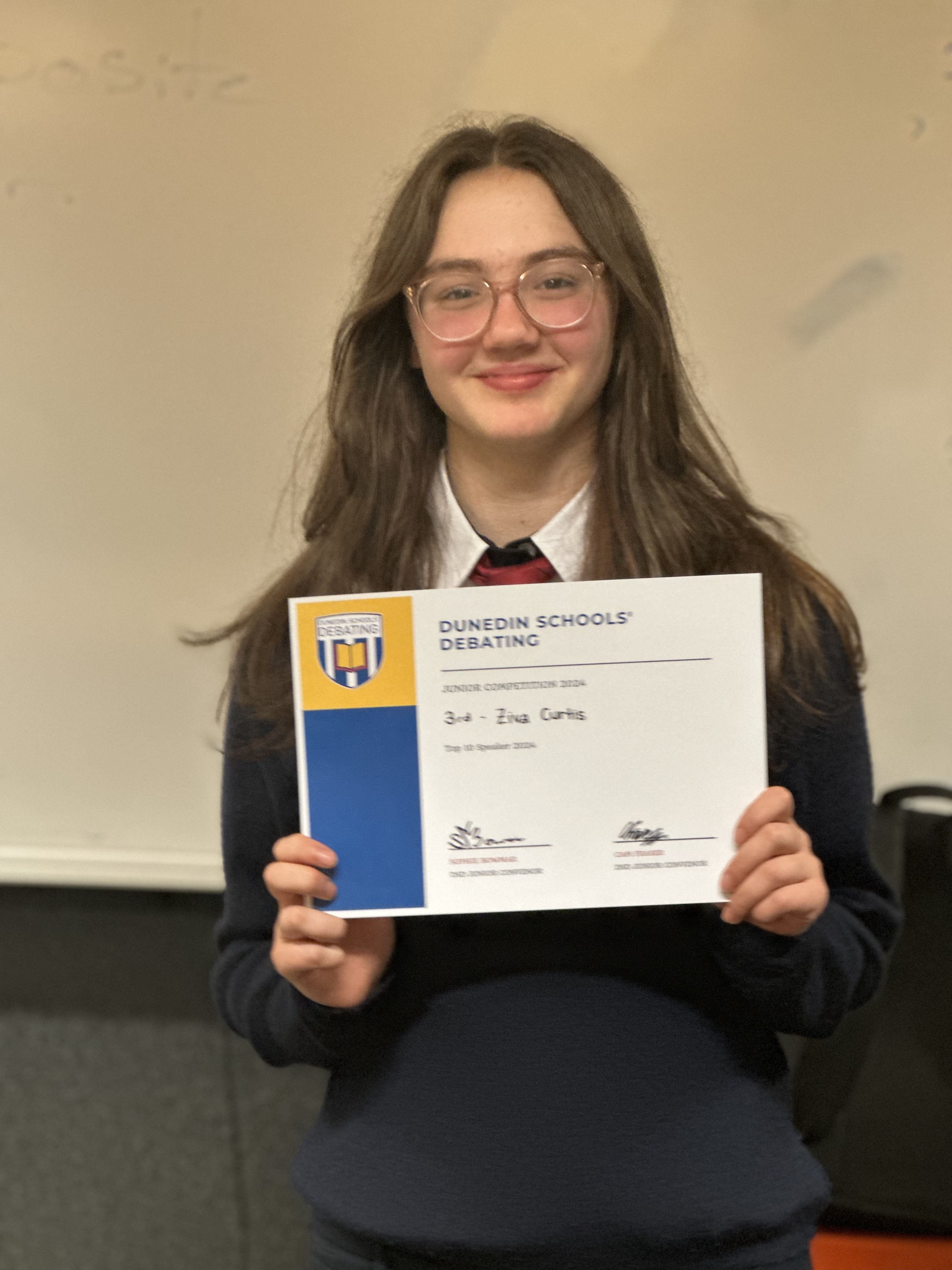 Congratulations to Ziva Curtis who won an award for third best speaker out of ten. Ziva is a talented debater and this is well deserved.