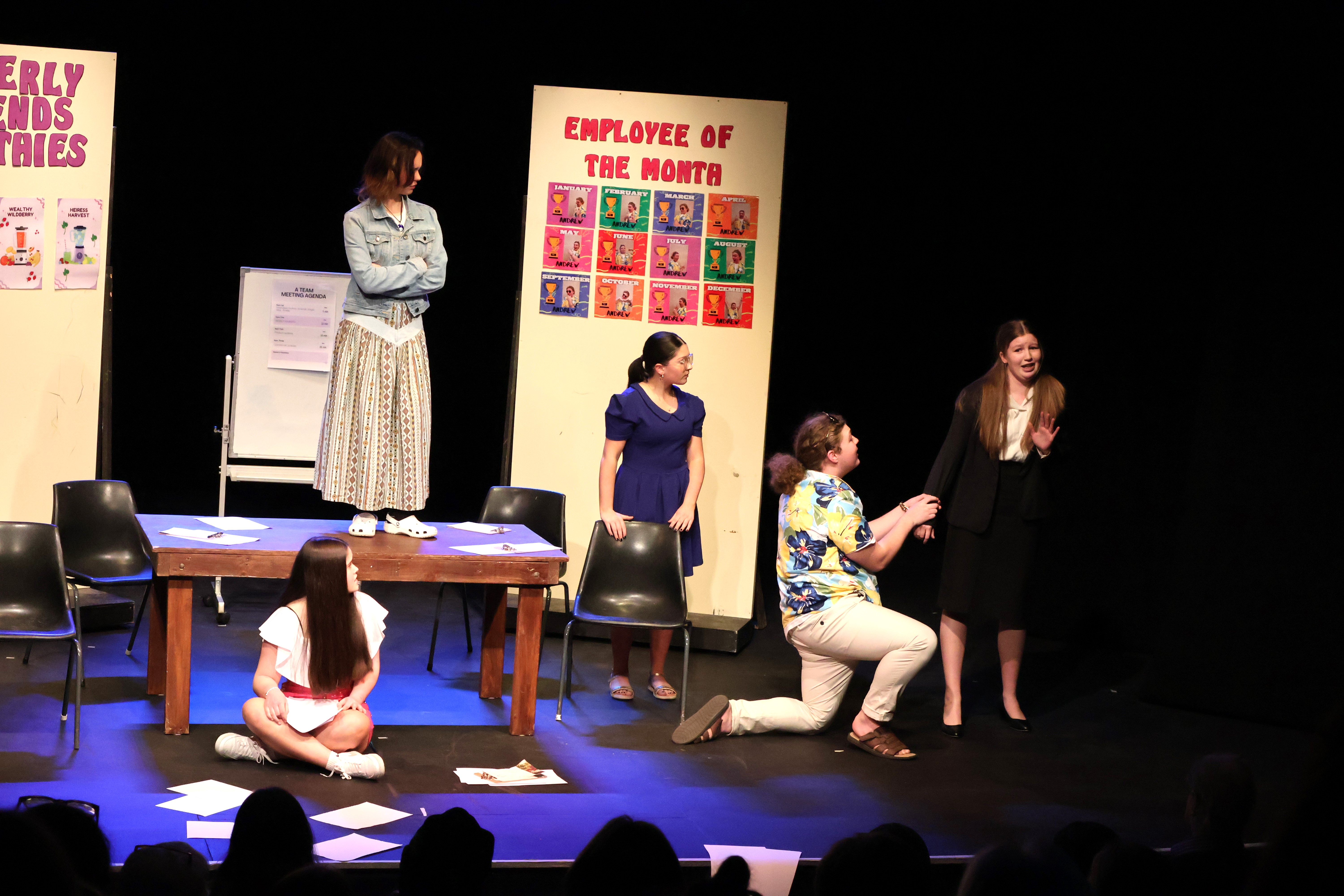 After their success at the Otago/Southland TheatreFest, both Trinity plays advanced to the next stage and were invited to perform in Timaru last Sunday. The seniors (who presented Pieces of Her by Ken Mizusawa) and the juniors (who presented I Think We Need to Have a Meeting by Lindsey Brown) both pulled off fantastic performances (against mostly adult entries) and came away with a number of awards: