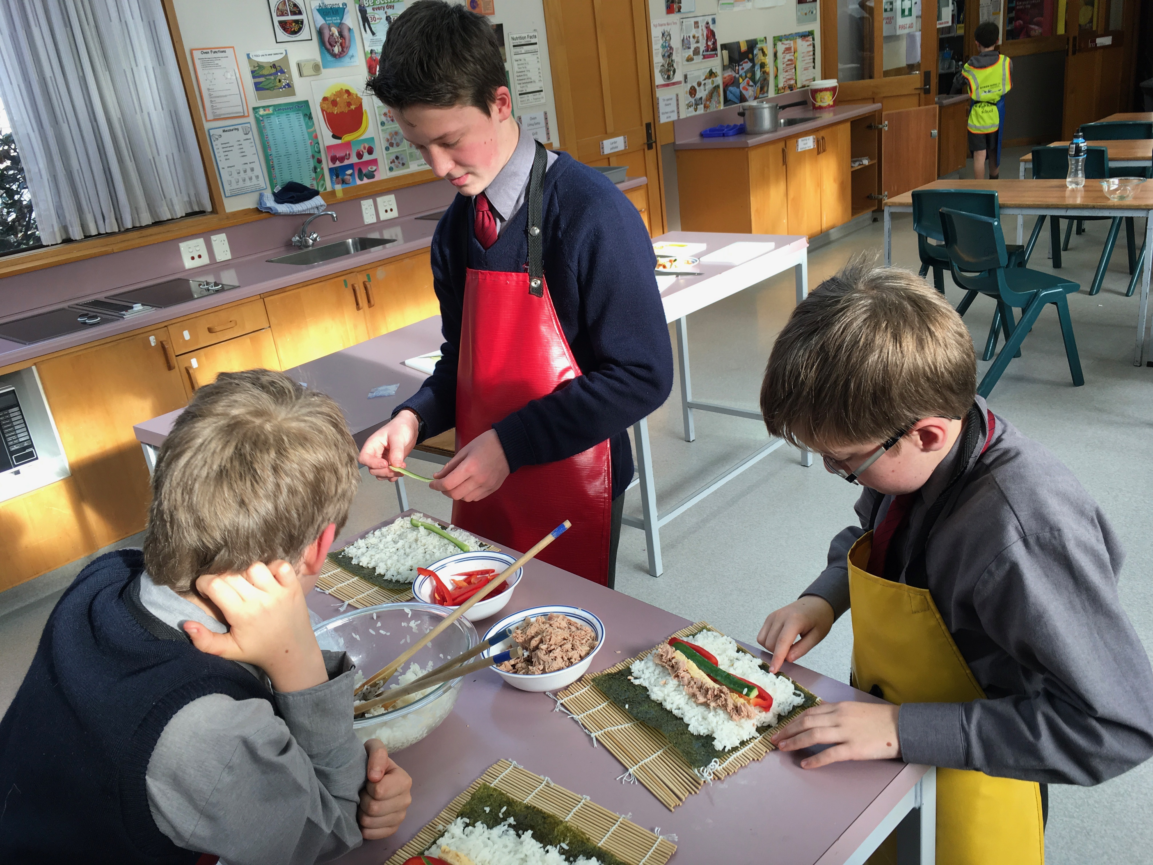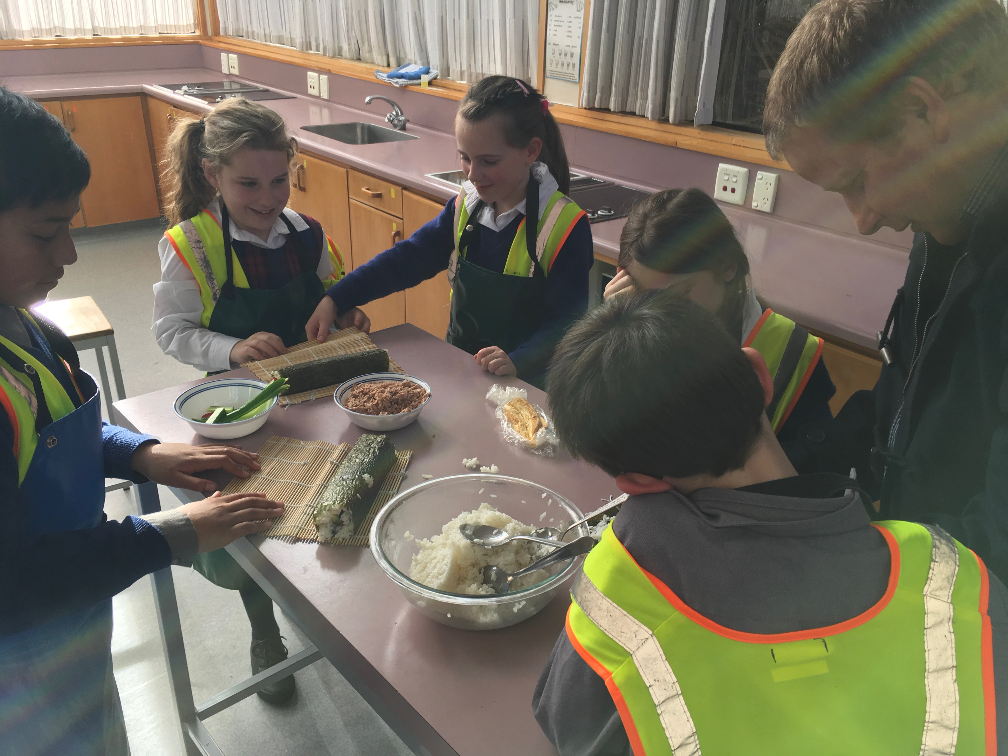 Naoko Inone-Kudo, a PHD student at the University of Otago, imparts her knowledge about Japanese cooking with Kavanagh and St Mary's students