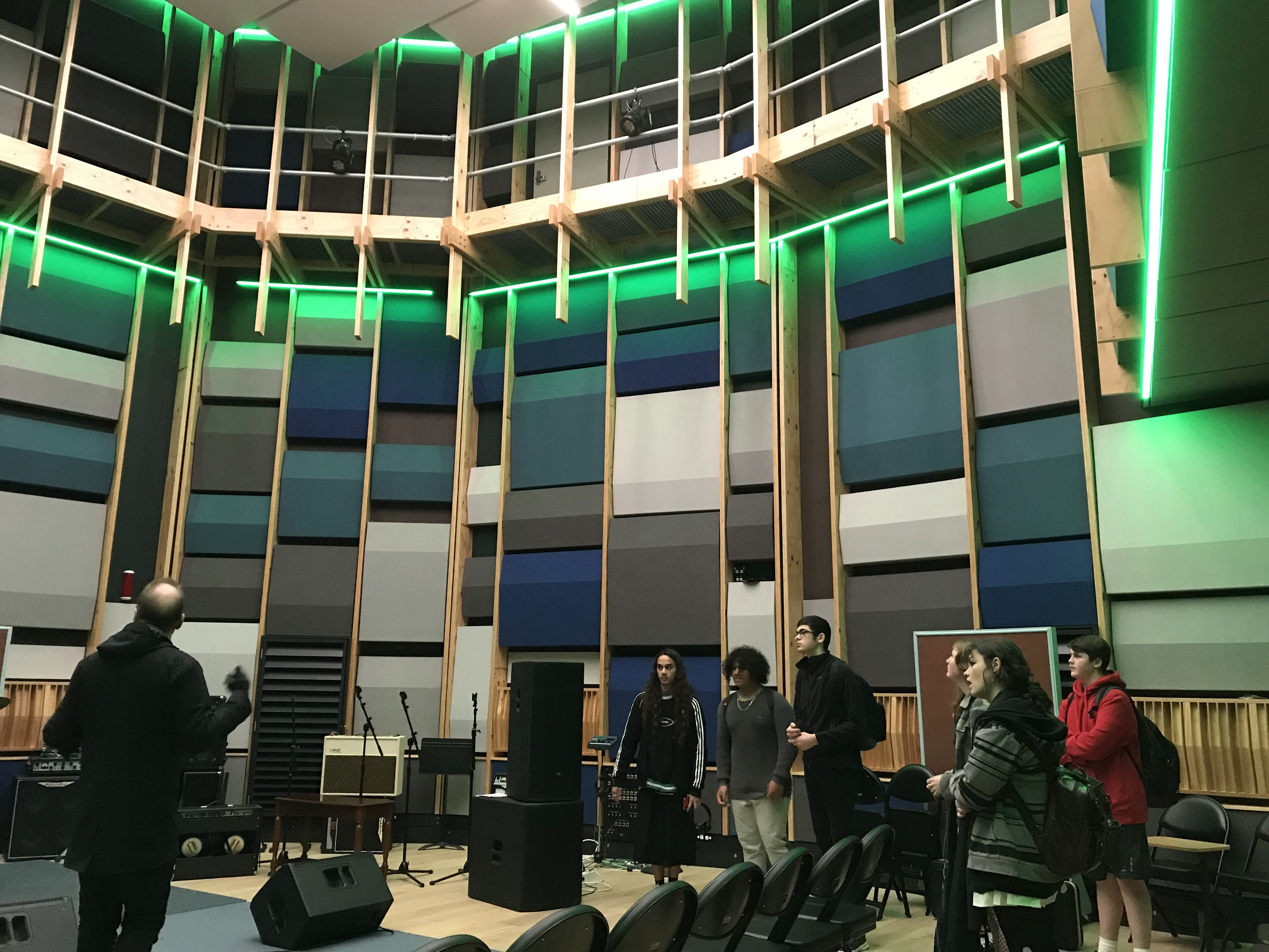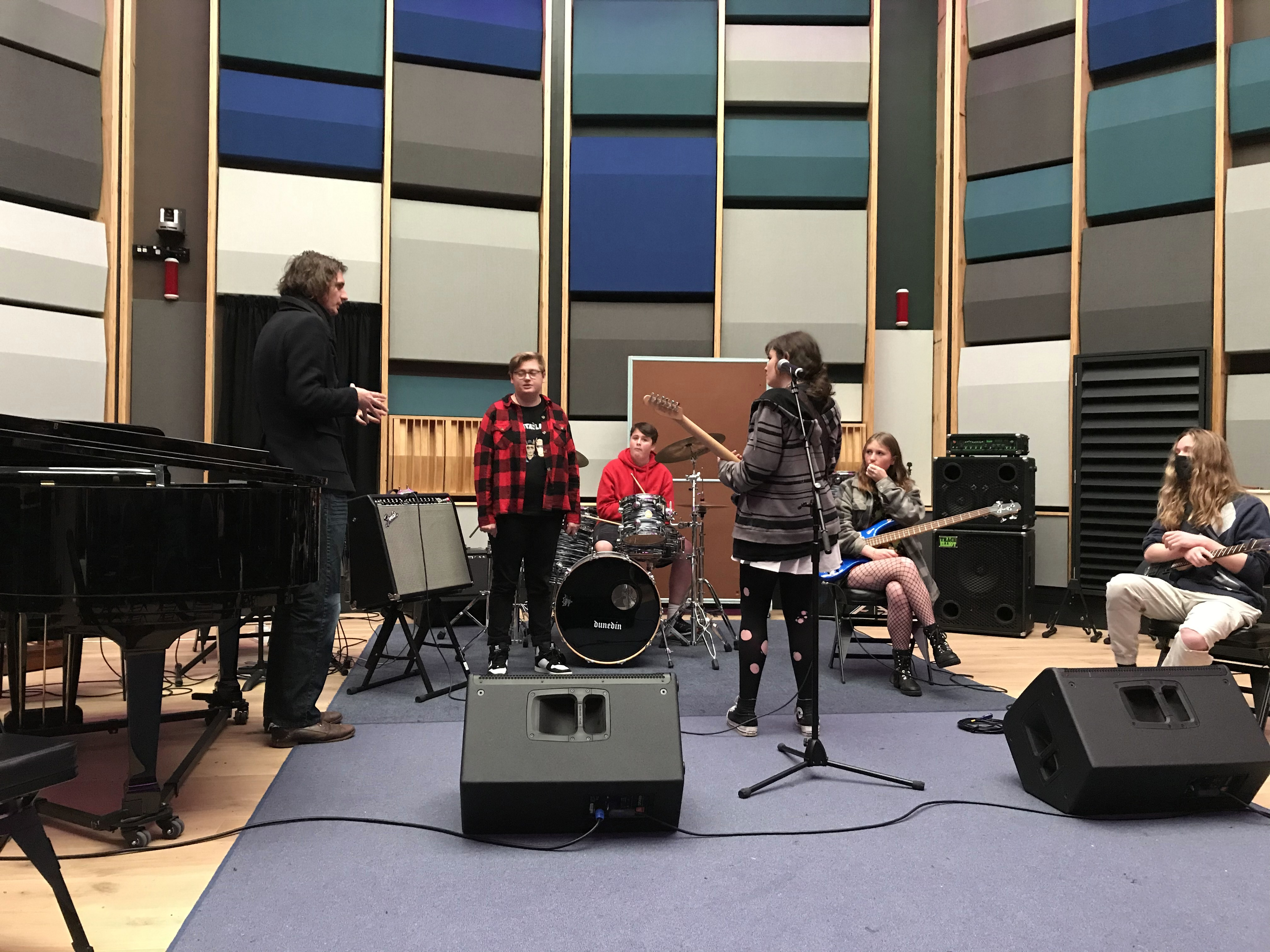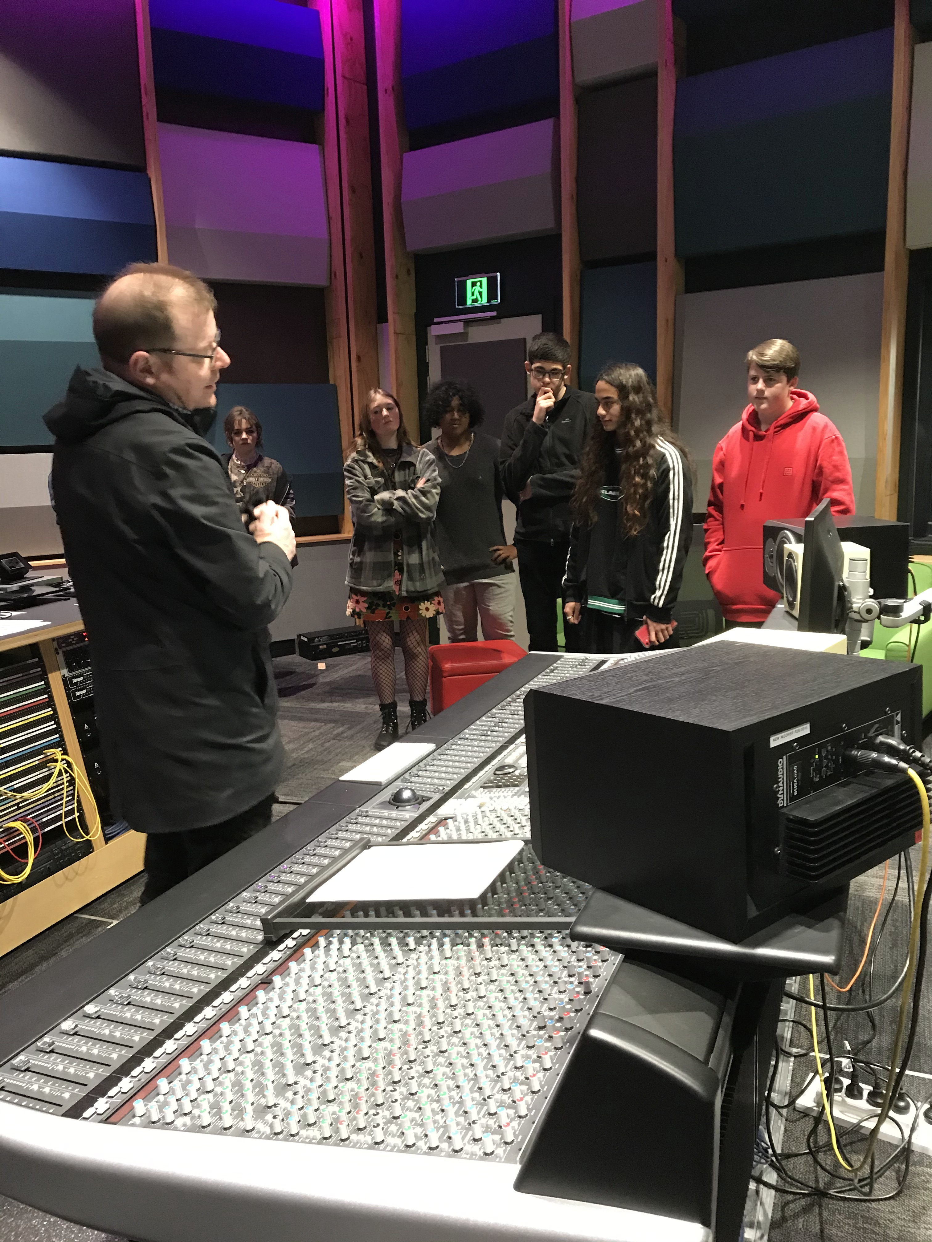 Jakira, Lexie, Jacob, Dragon, Jamie, Te Kahui, and Lewis were able to hear what their songs sounded like in the new studios and get valuable feedback about how to progress with them, as well as ask questions about the music pathways available at Otago. Ms Watts also learned a lot about the use of autotune, although not on her voice because she doesn't need it.