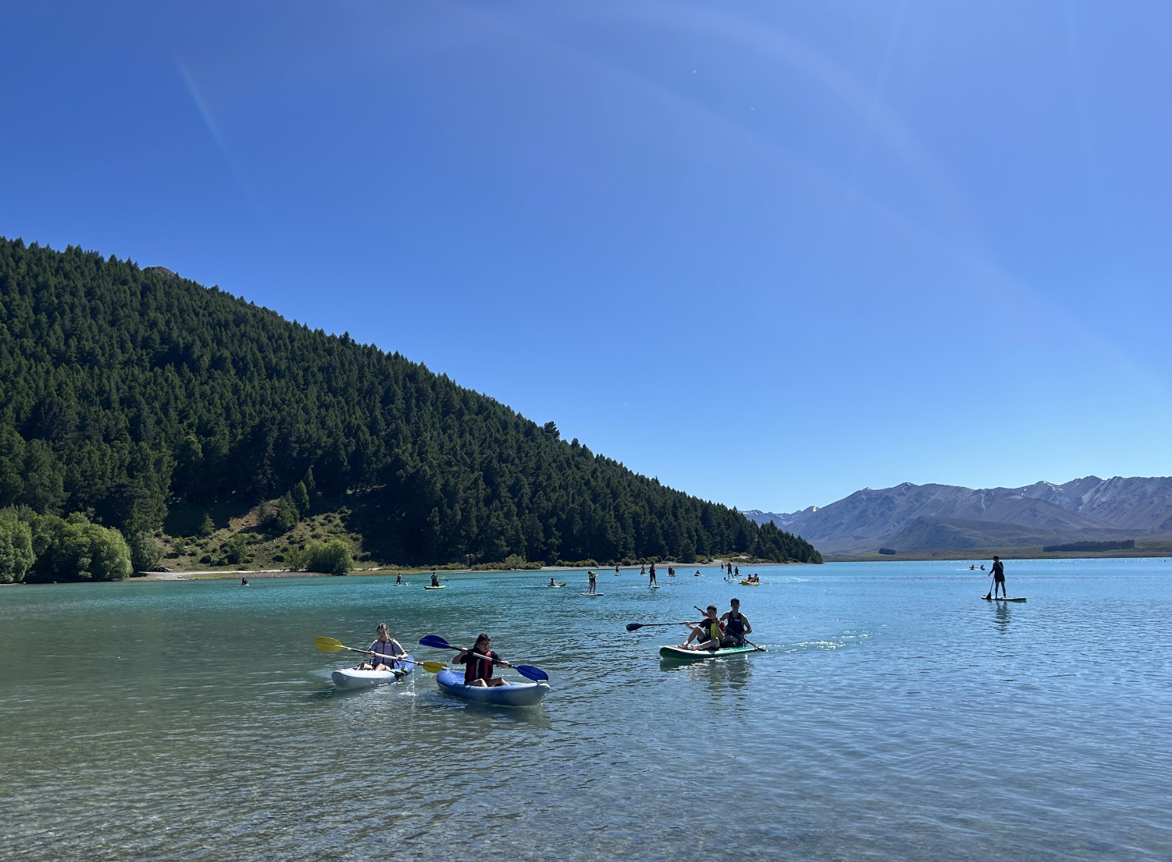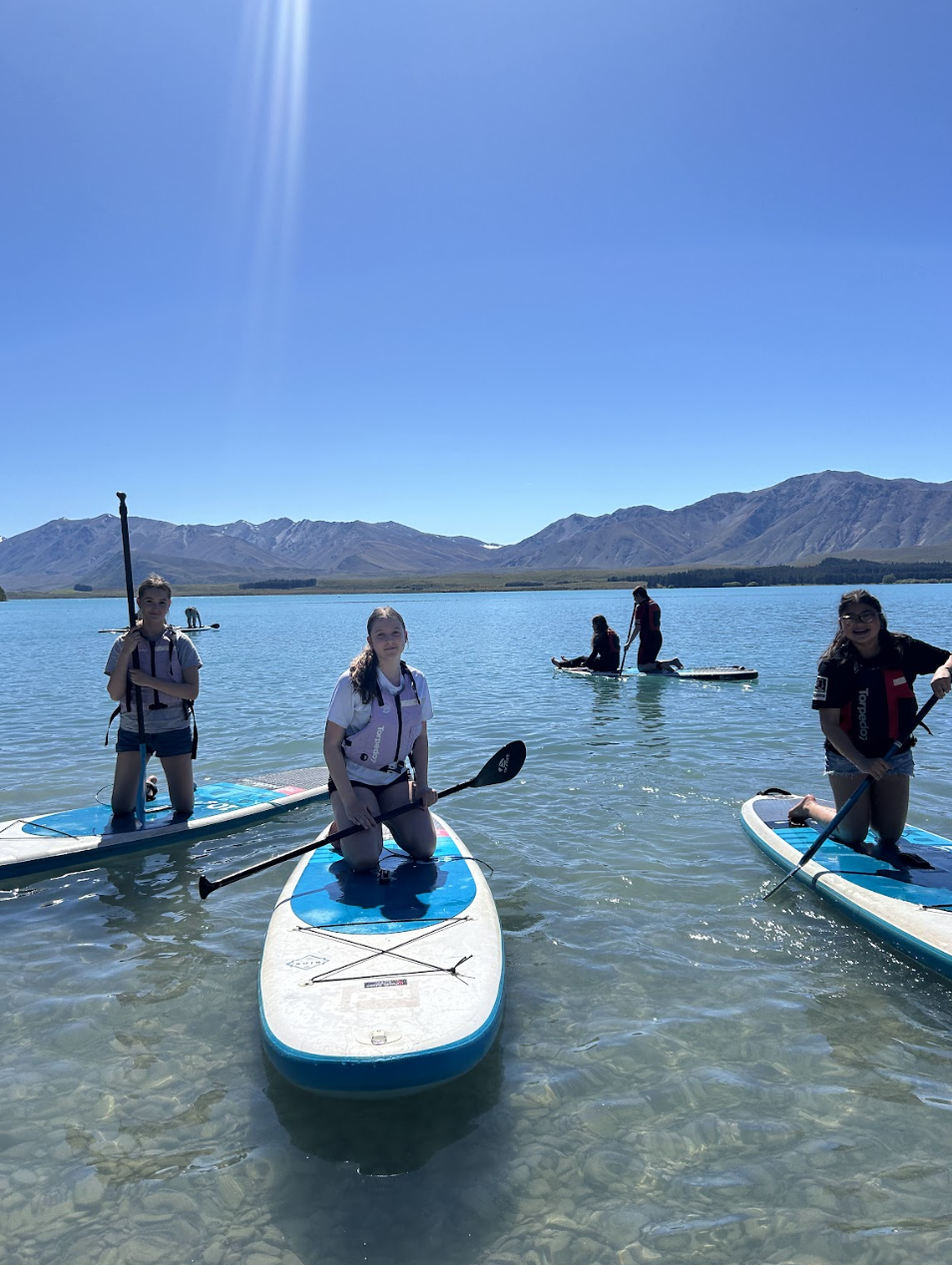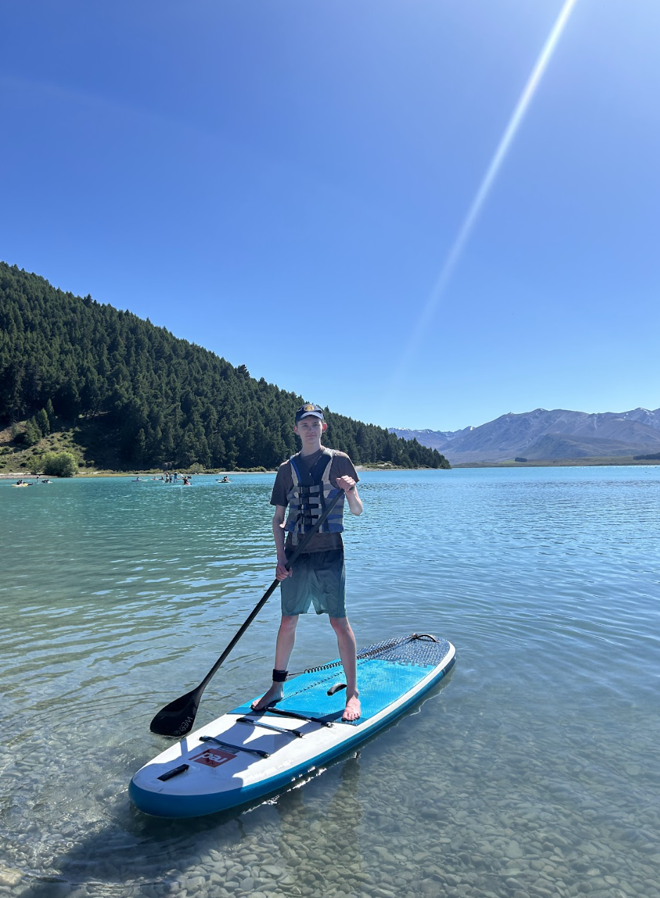 On day two, the group got up early and headed to Tekapo for a full day of fun. We were lucky to have perfect weather. First up was a kayaking and stand-up paddleboarding session with Pete from Paddle Tekapo. The students paddled around the lake for about 1.5 hours, with plenty of splashing, capsizing, and even some swimming! The water was chilly but refreshing, and everyone had a blast. Afterward, we had lunch by the lake before heading to the Tekapo hot pools to relax. There was also some mini-golf played for a bit of extra fun. The day wrapped up with a shared lunch from the local food truck, Monsta Kitchen, which was a huge hit with everyone.
