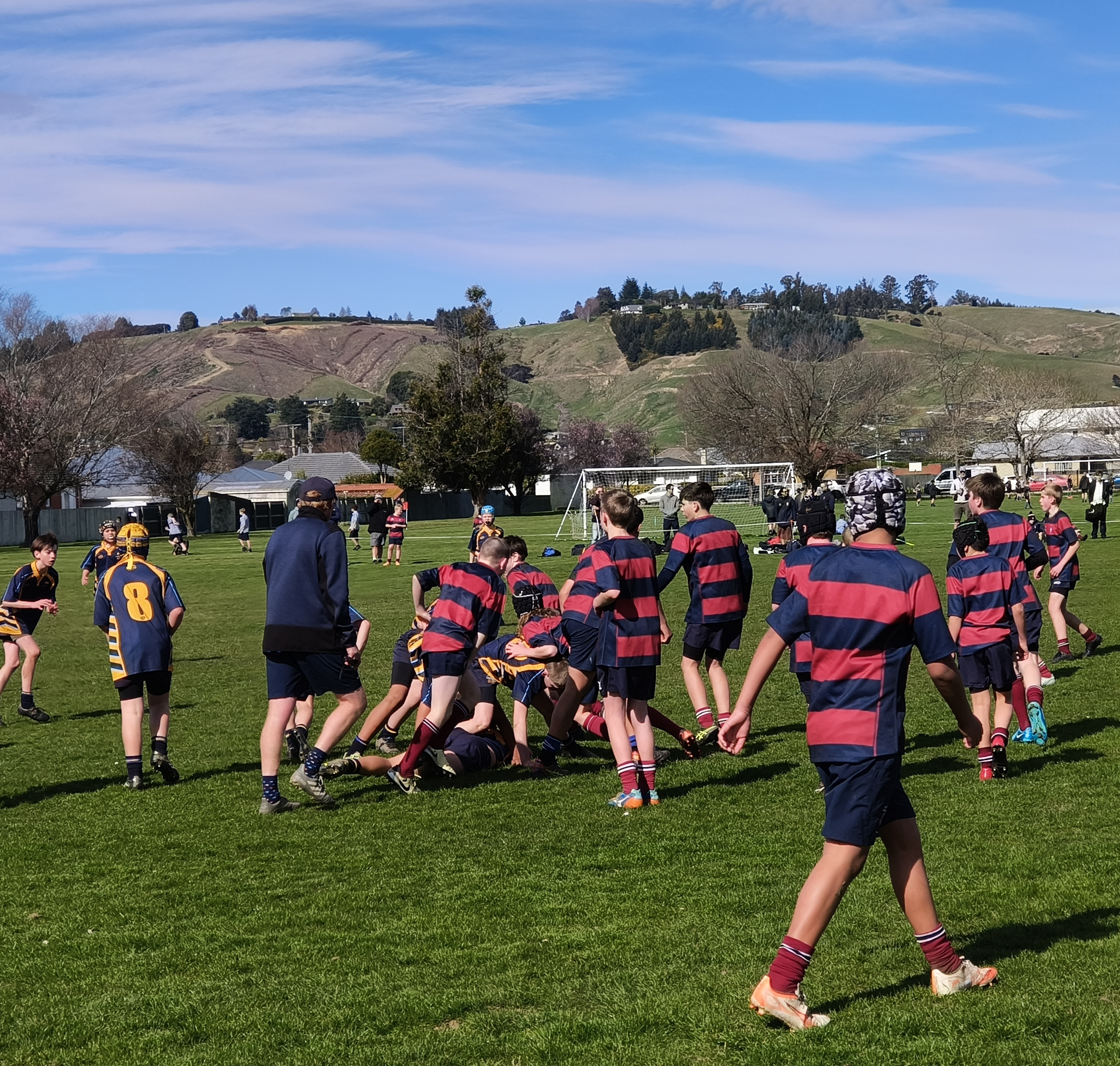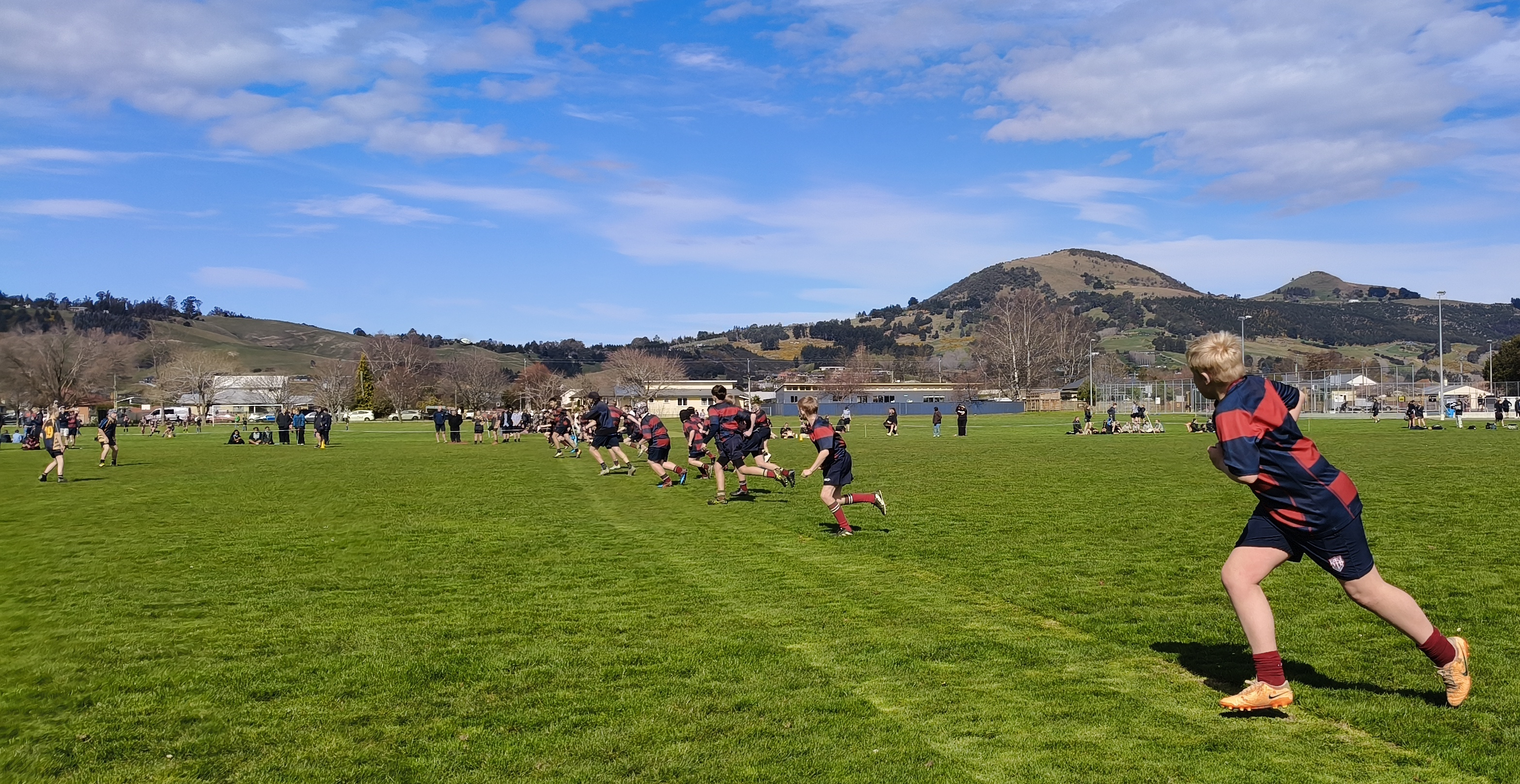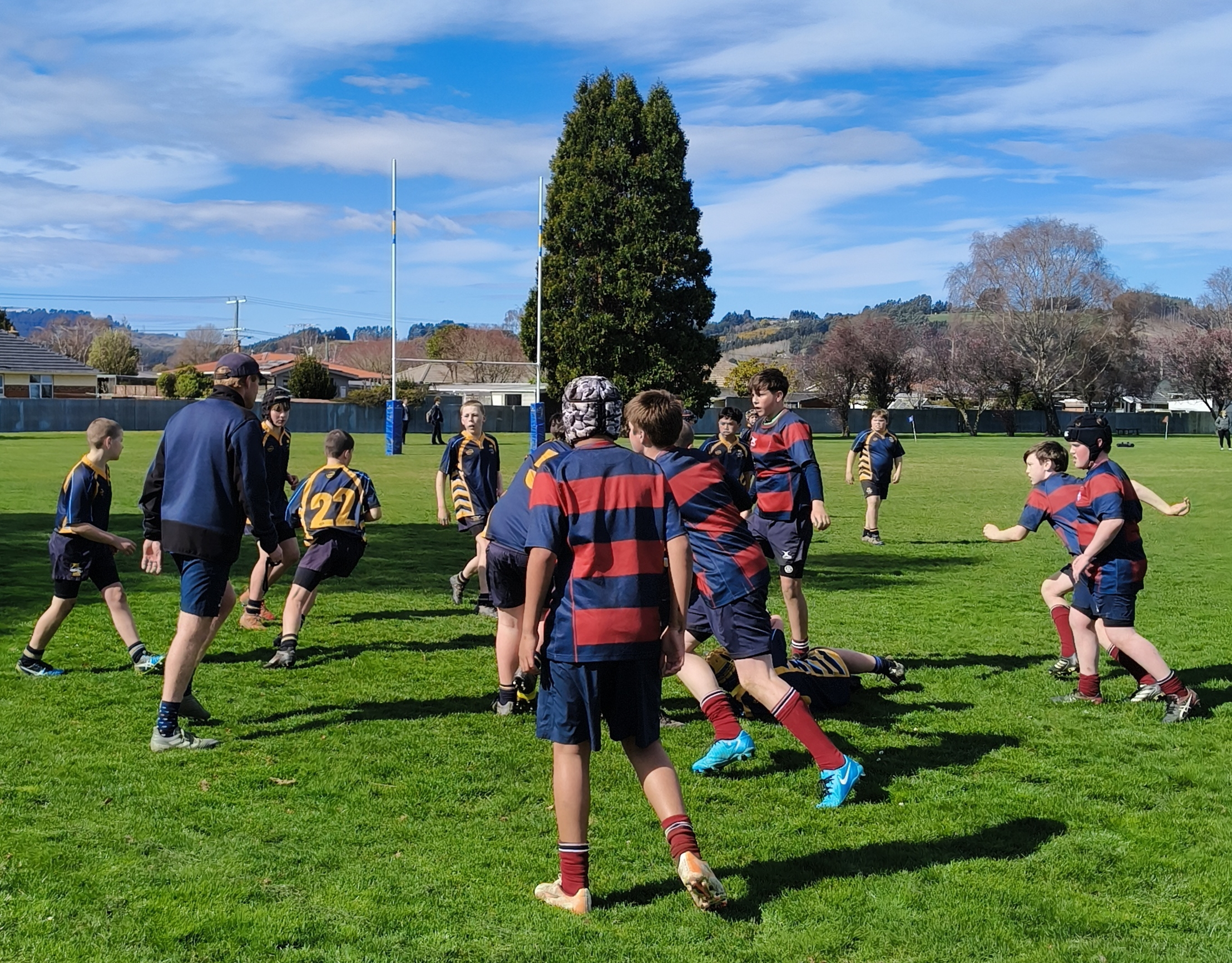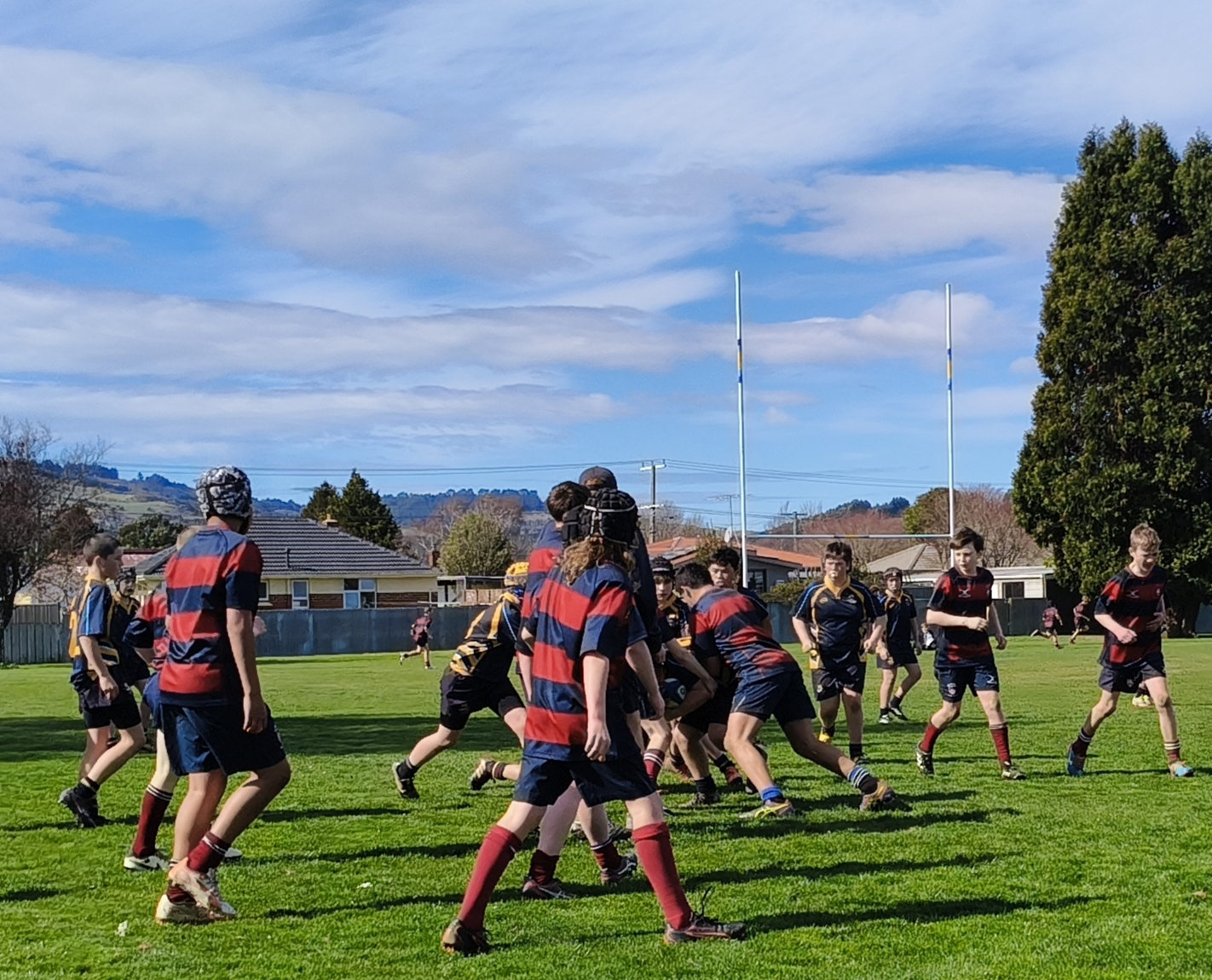 What a beautiful Spring day we had yesterday in Mosgiel. The conditions and field were perfect as our Junior Rugby team kicked-off to hosts, Taieri College. A strong chase line quickly put the opposition under pressure and sure enough after some quick hands, the points came a few moments later with Fergus Barnett opening the scoring. After the restart, Taieri College knew they did not make tackles, they would pay the price. Tommy McEntyre was again in top form as he sliced the opposing backline to pieces running in his first of four tries. Halfback Isaac Jago combined nicely with first five-eighth, Joe Burke. The duo were reading play well and making sound decisions with ball in hand.