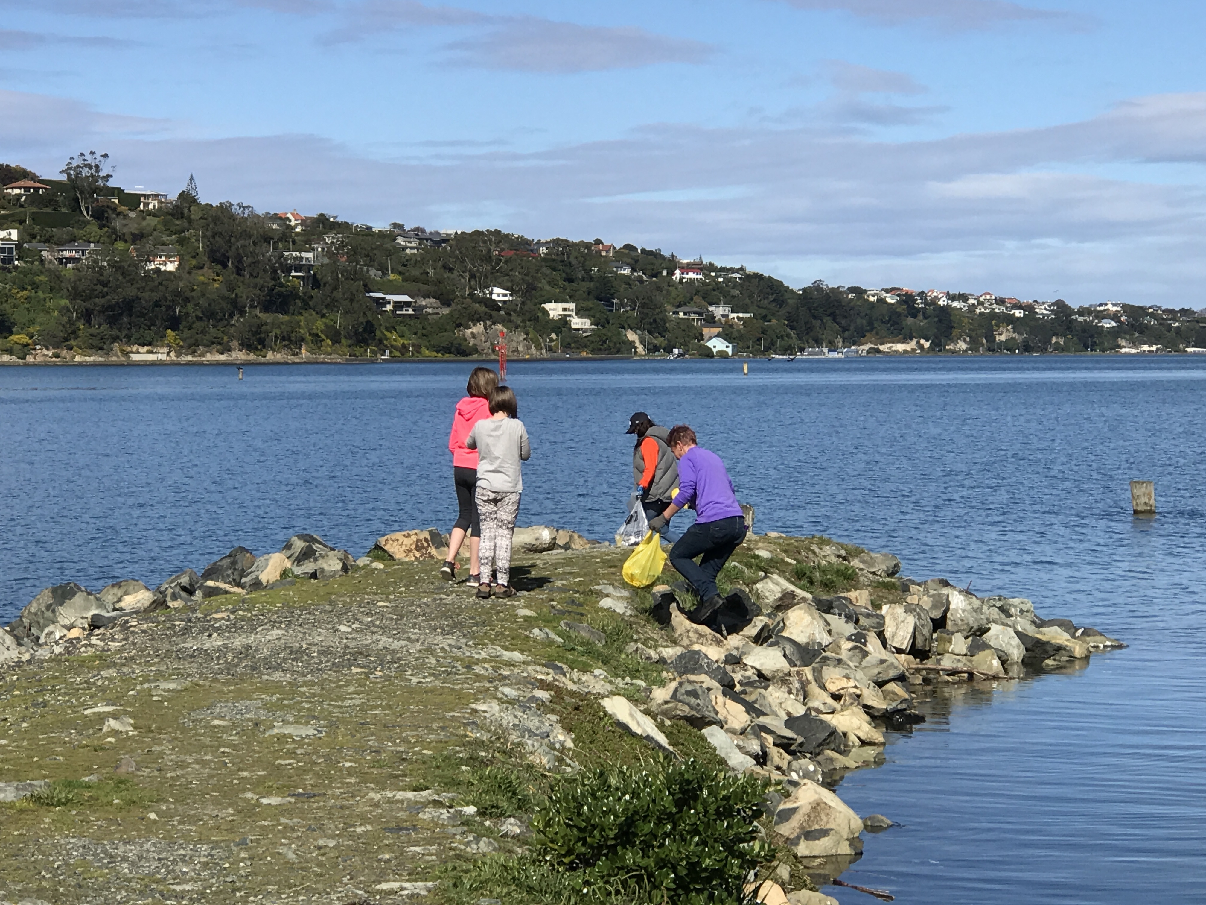A large number of students, parents, and teachers enjoyed the beautiful day on Saturday collecting rubbish at Otago Yacht Club. They found all sorts of rubbish and had a great time while feeling pleased they had helped stop some rubbish from reaching the ocean.