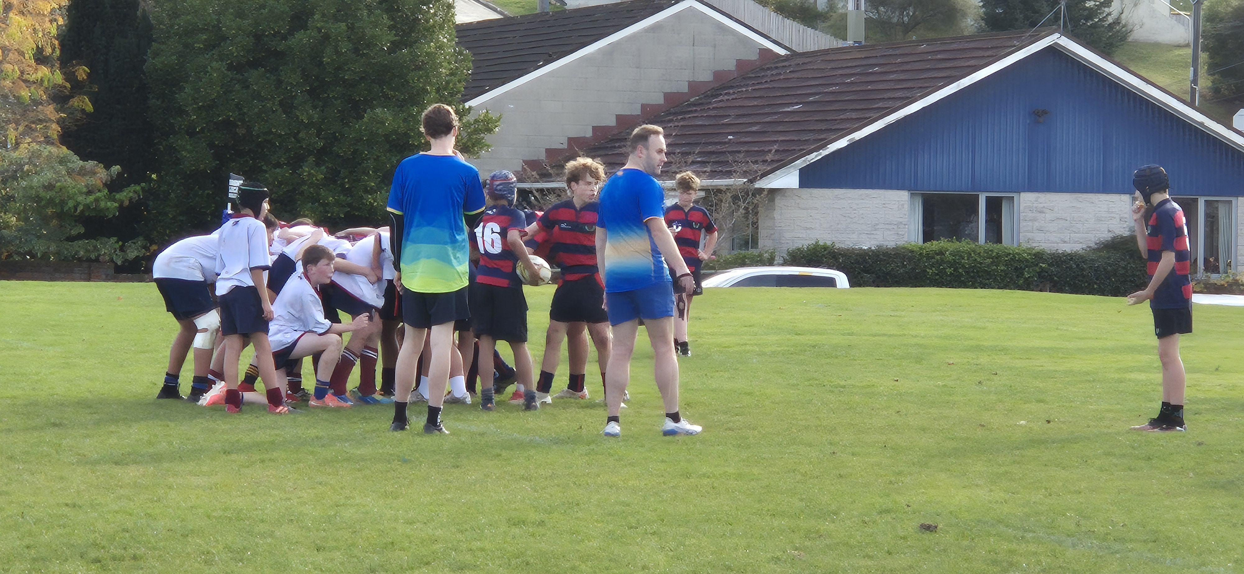 At 12.30pm on Friday 23rd May the Trinity year 7 and 8 rugby team had their season opener against the powerhouse that is Balmacewan Intermediate. Having lost the game 30 points in 2024. This was going to be a challenge.