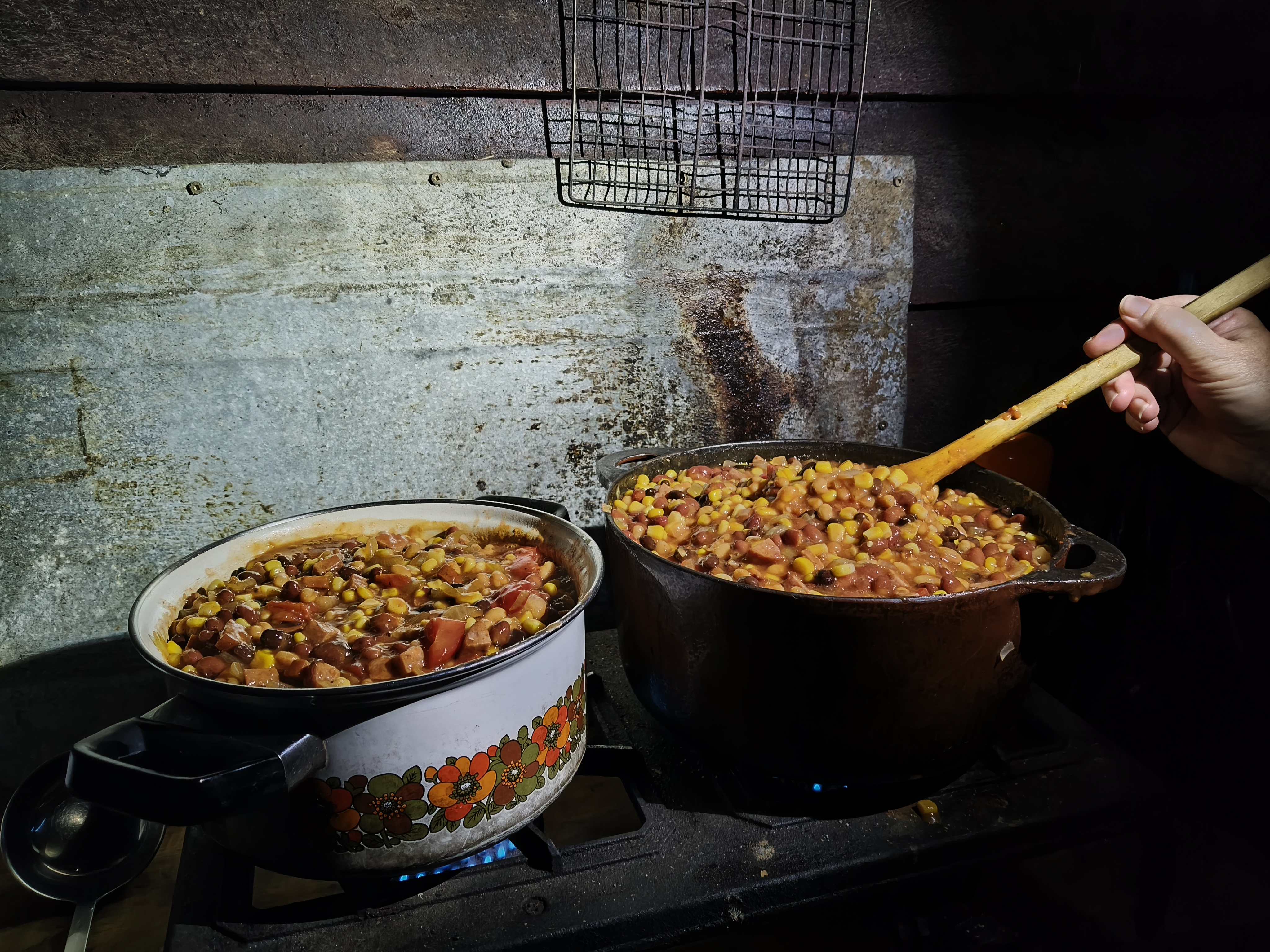 2. Add baked beans, chilli beans and kernel corn and stir until bubbling.