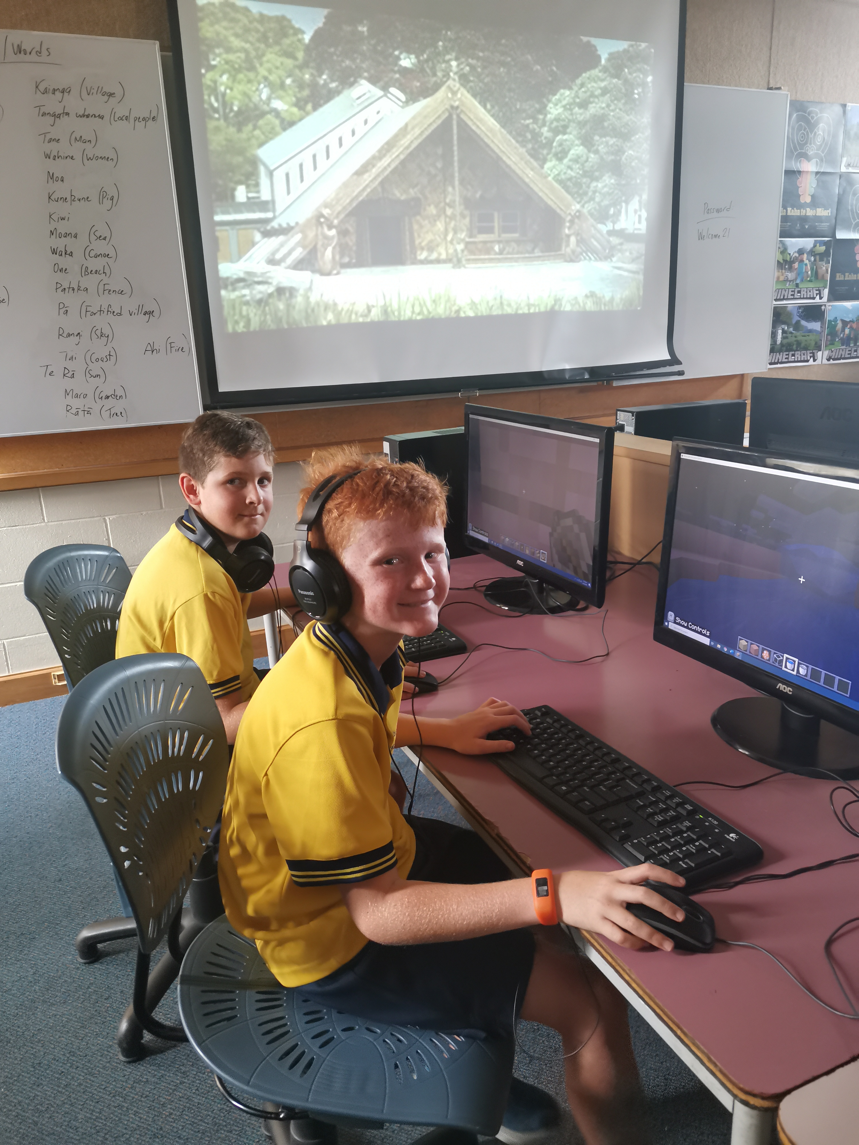 Students were asked in the digital technology challenge to collaborate and build a wharenui (meeting house) using Minecraft. It was clear to see that many of the students were experts at using this creative game. We were highly impressed at the intricate designs and inclusion of traditional Māori colours and designs when building their wharenui. Year 5 student, Isla Harris, crafted a beautiful meeting house on a picturesque lakeside setting.