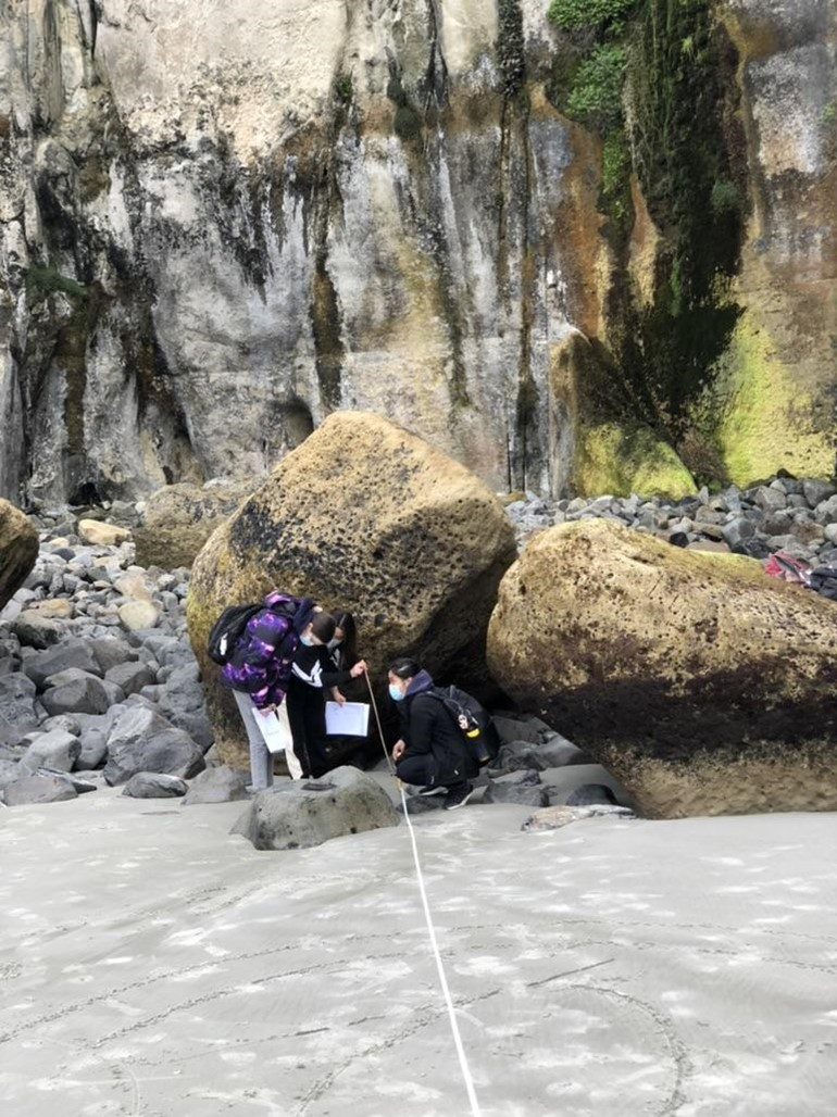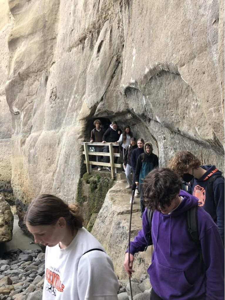 We started at Tunnel Beach, navigating the tunnel and the rocky beach, to get to the seashore. We measured and drew some beach profiles, counted waves, and threw oranges in the water to watch the movement of longshore drift. We established that the Caversham sandstone headlands protected the beach from sand deposition, but increased the intensity of the waves.