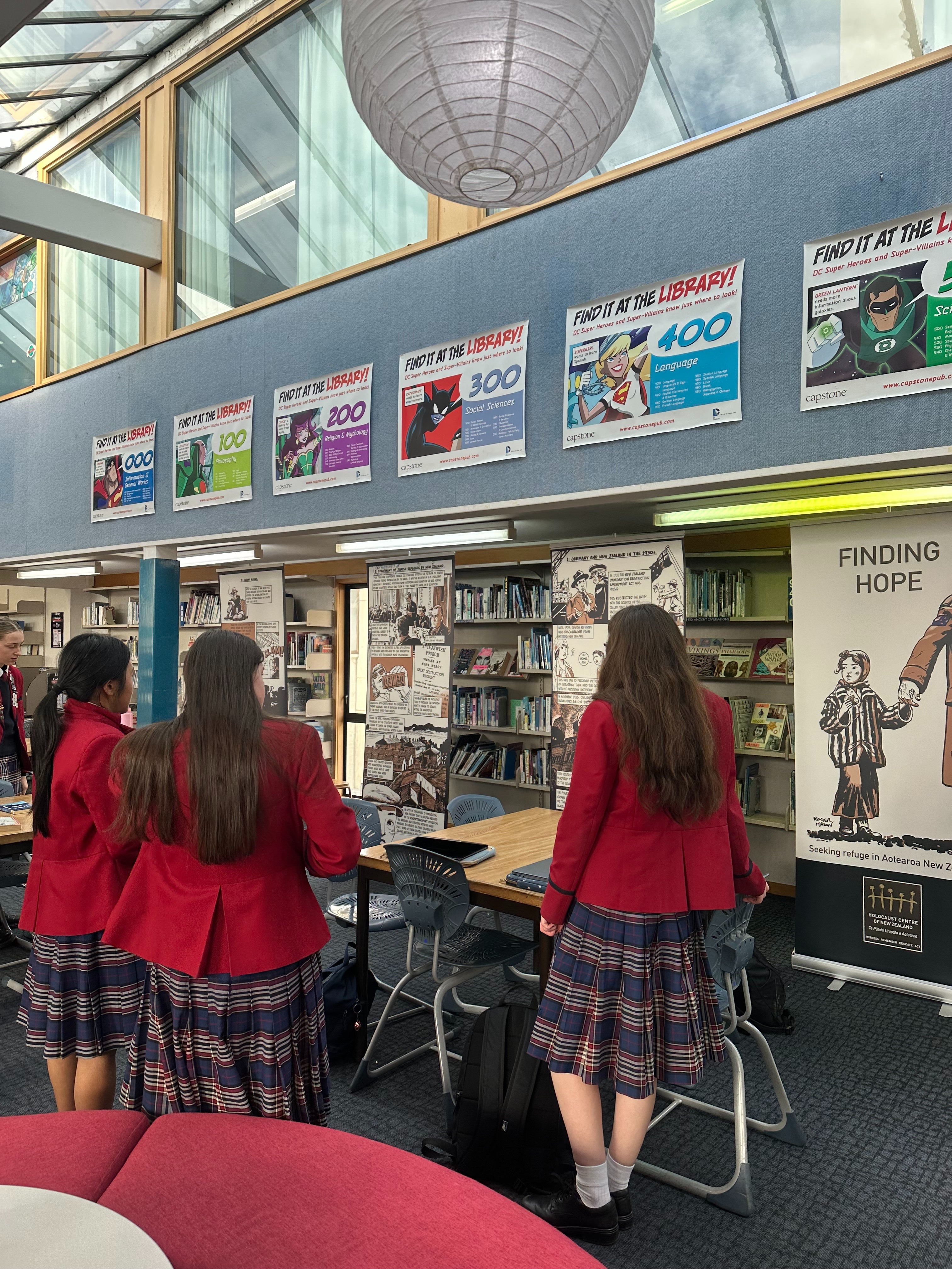 A wide range of Social Sciences classes engaged with the Holocaust Centre of New Zealand’s Finding Hope Exhibition in the school library. They read the informational panels, completed a source analysis quiz, and reflected on their key learning. It was also wonderful to see students from different year levels stopping at the exhibition during their breaks to learn more about New Zealand's connections to the Holocaust. Our librarian, Colette, also curated a special set of fiction and non-fiction texts for students to select from related to the Shoah and World War Two.