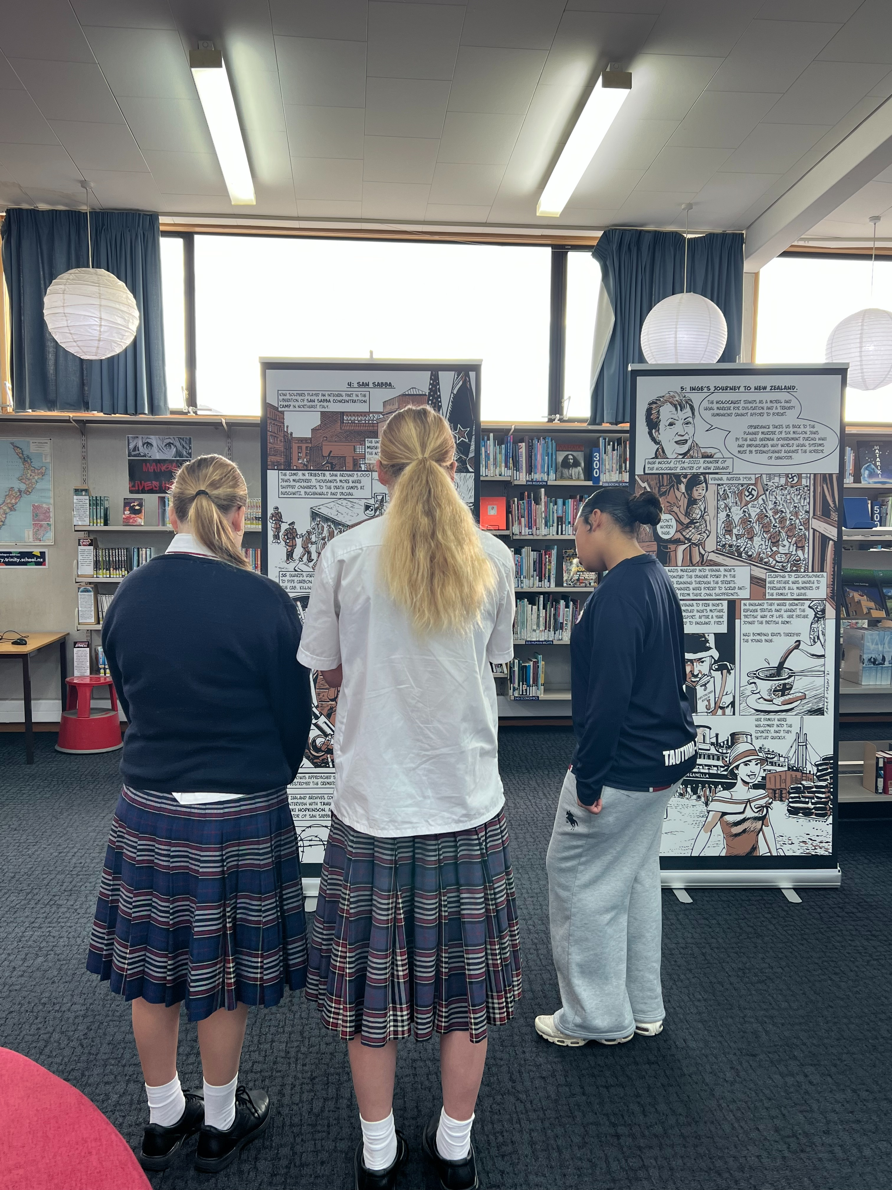 “Recently, nine storyboards have been displayed in our school library, exhibiting various topics such as the rise of Nazi persecution, as well as New Zealand refusing some Jewish communities from entering the country. In these panels, it also displays the perspectives of survivors who started their lives again. These topics relate to us as a year group, as we have been studying the Holocaust for our most recent assessment, which makes this information significant as well as relevant to our learning.”