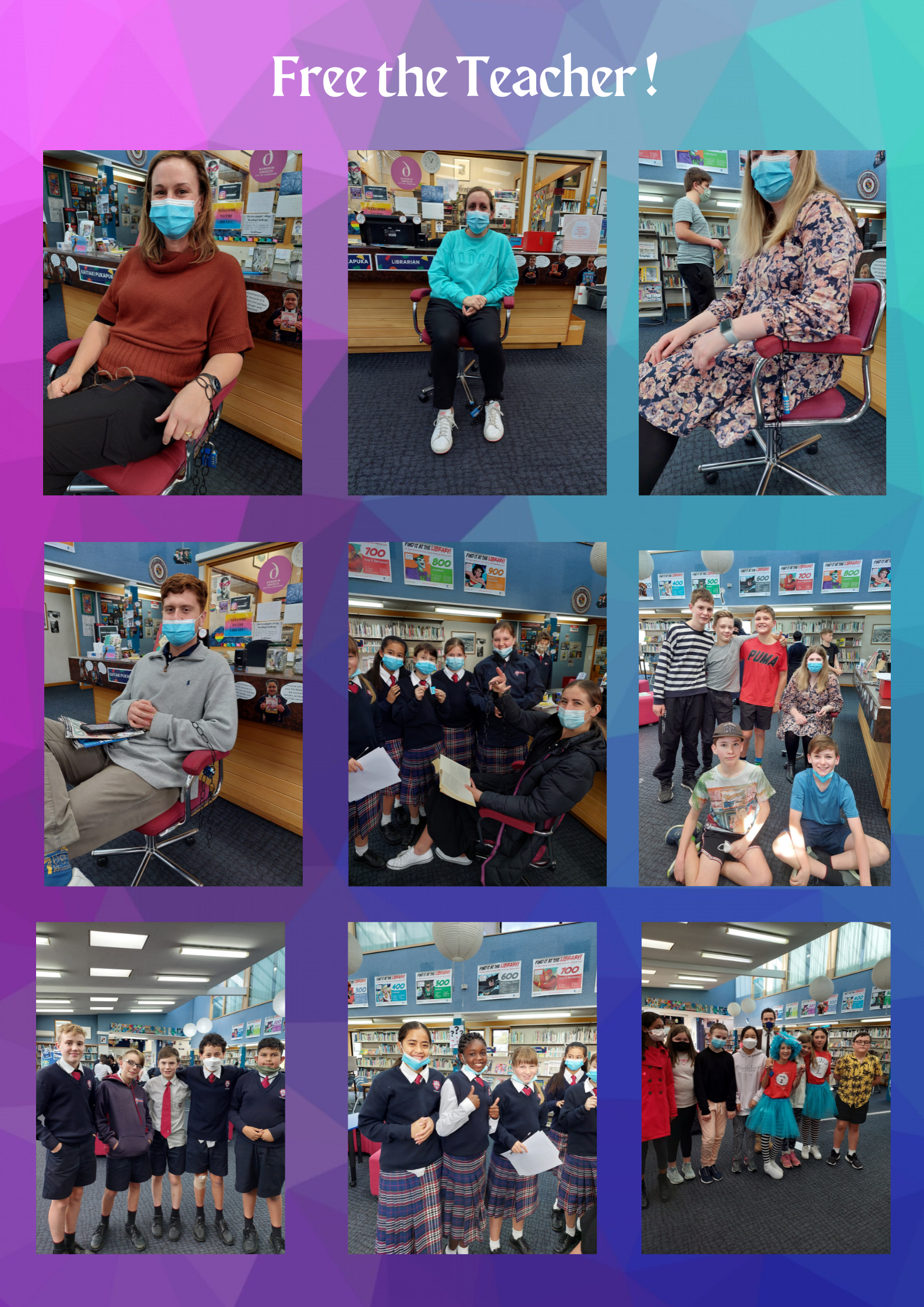 Wow! What a fun and busy Book Week we had! Our Year 7 and 8 classes had a great time attempting to 'Free their Teacher'. This Escape Room-Esque activity involved 5 teams per class. They had questions to solve and codes to crack to uncover the secret word that would unlock the padlock and release their teacher. There were some impressive problem-solving skills on show, but most of all everyone had a lot of fun. I am pleased to say no teachers were harmed during these activities!