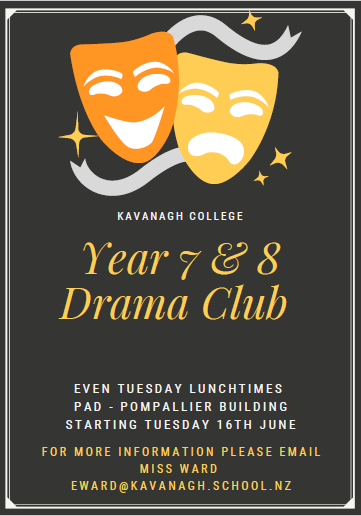 Year 7 and 8 Drama club started again this week. The club will meet EVEN Tuesday lunchtimes in the PAD for Term 2 and 3.