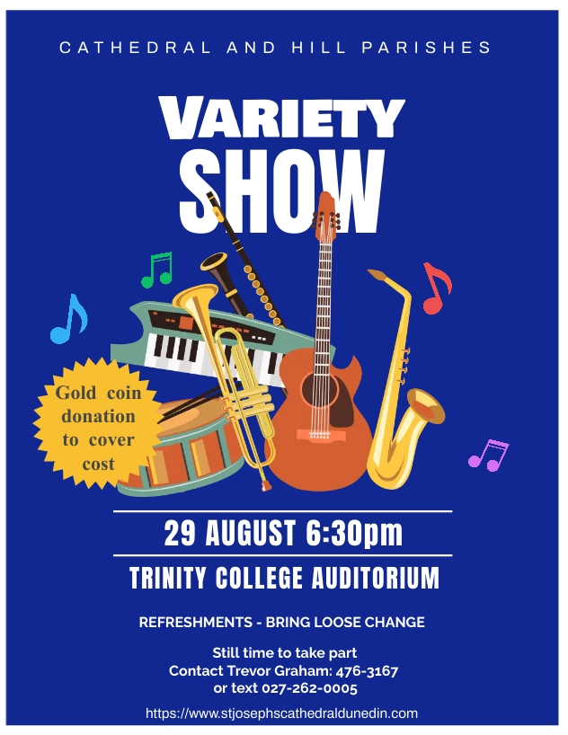 The Hill Suburbs Pastoral Area is holding this Concert/Variety Show on Thursday 29 August 2024, 6:30pm at Trinity College Auditorium. Entry will be by gold coin donation to cover costs. All Welcome.
