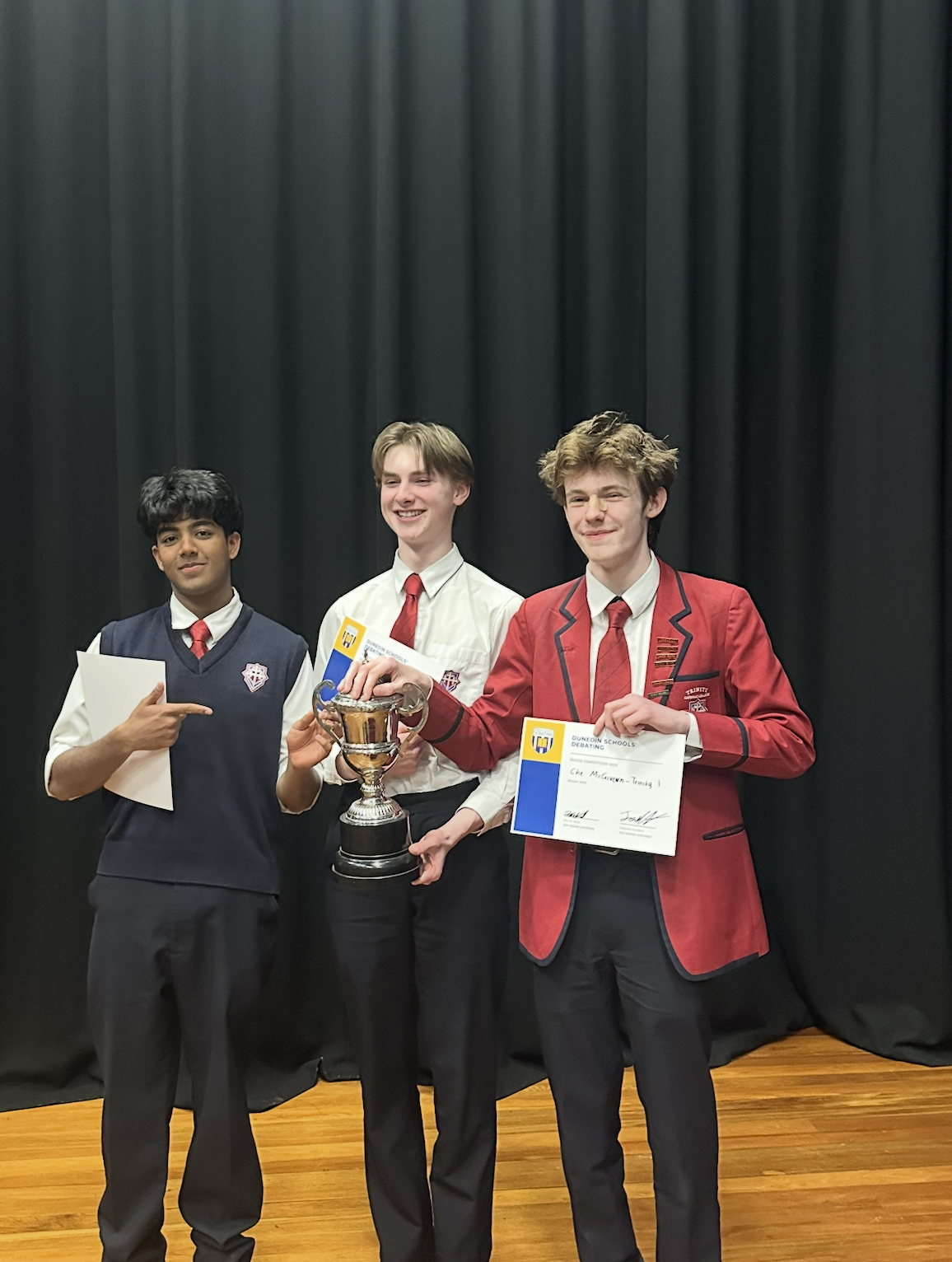 Congratulations to our senior debate team, Akein, Ché and Joseph, for winning the Dunedin Secondary Schools Debating (DSD) Competition - securing Trinity as the champions of both junior and senior debating in Dunedin! (Two weeks ago, both junior Trinity teams made the semis, and Trinity One won the junior tournament.)