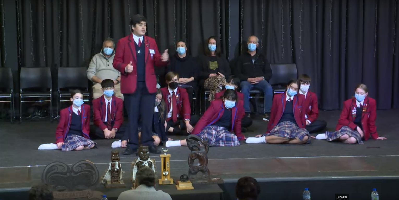 Your can view the competition here https://ngaitahu.iwi.nz/culture/kapa-haka-live-streams/manu-korero-live-stream-2022/. Kavanagh is 3:14 into the video.