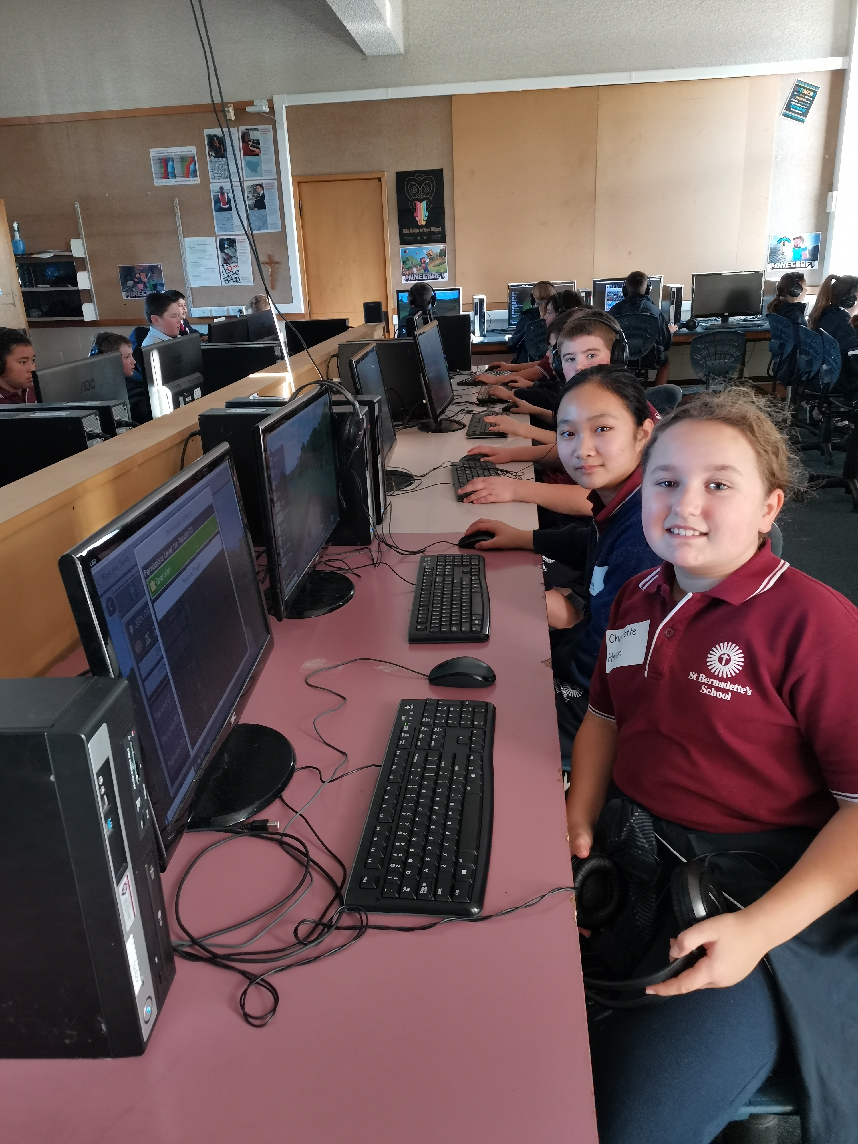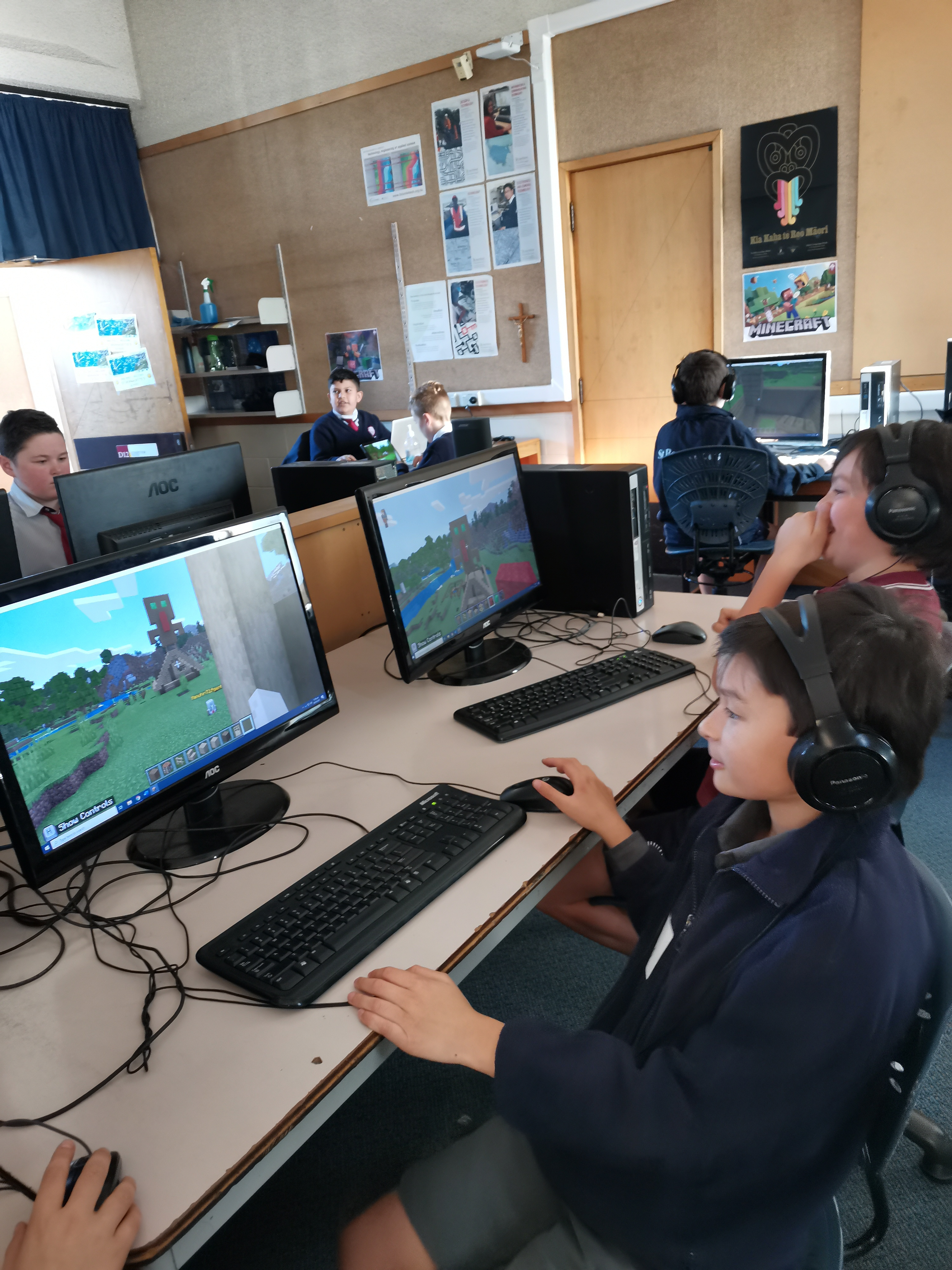 Room 7 from St Bernadette's School visited the college yesterday as part of their Te Rā Nui Ki Waho (The Big Day Out). As with any visit from this special school, the students were full of energy and ready for learning. Accompanied by Mr Gerard Shaw and Mrs Deb Whitty, the day began in the computer lab with a Kahoot (interactive online quiz) that tested the student's knowledge about Mahimania (Minecraft). Minecraft is a global phenomenon with 126 million active monthly users and and has over 100 billion views on YouTube every year. This teaching resource has many real world applications such as collaboration, creativity and problem solving. In the digital technology challenge the students constructed projects such as marae, kainga (village), whare (house), waka and ngā mara (gardens). In the show and tell part of the session, we were highly impressed with what was created. Year 6 student Chelsea Jarvie created a beautiful village with gardens with her team. Eli Bone and his team produced a stunning marae with it's own taniwha which was a kaitiaki or guardian.
