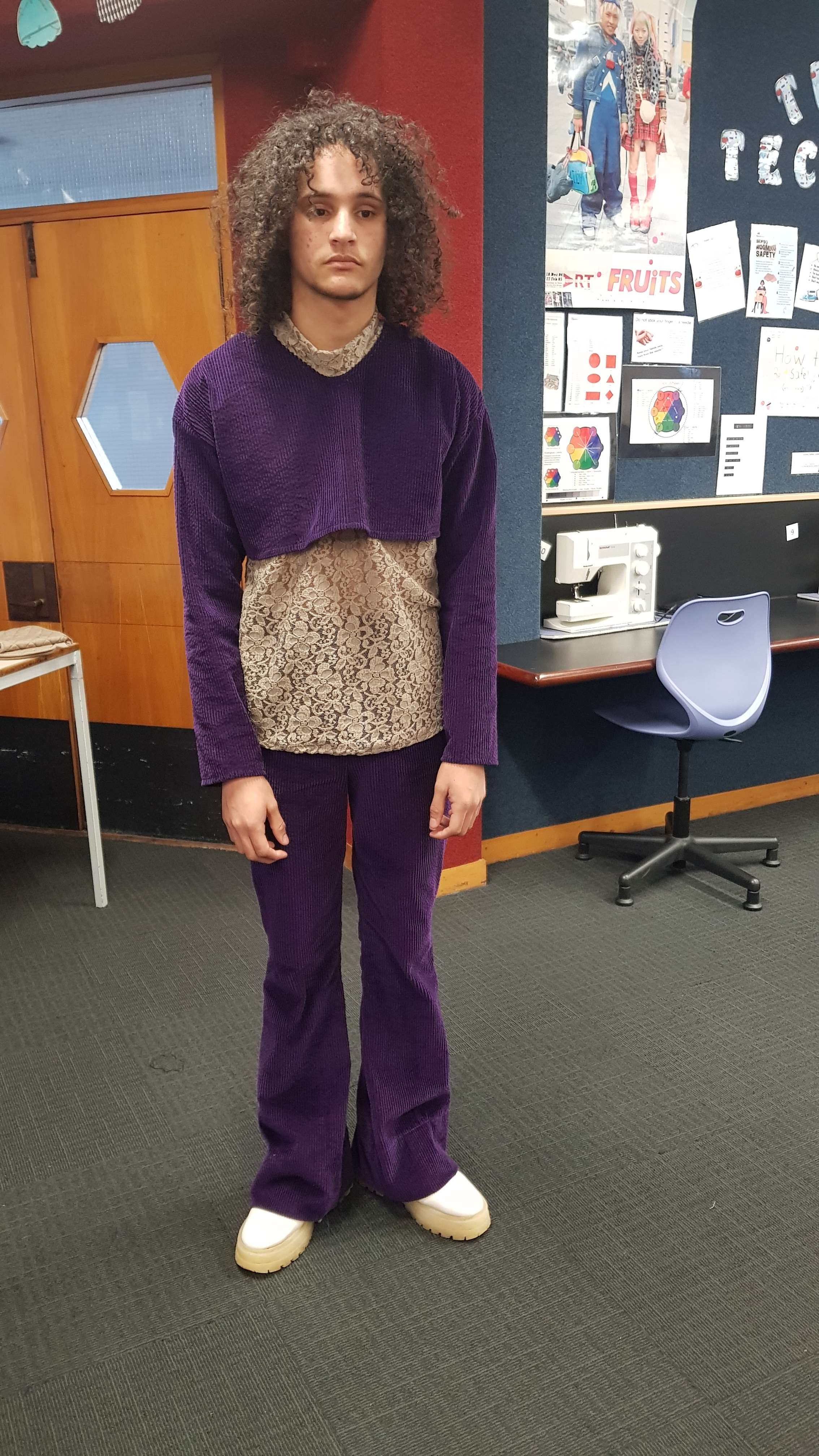 Cody has joined the Year 13 Textile Design class in 2022 with very little experience in garment construction. He knew he enjoyed drawing designs and has a keen eye for fashion. For him it was very special being able to watch his designs come down the catwalk and it has solidified, for Cody, what he wants to study next year.
