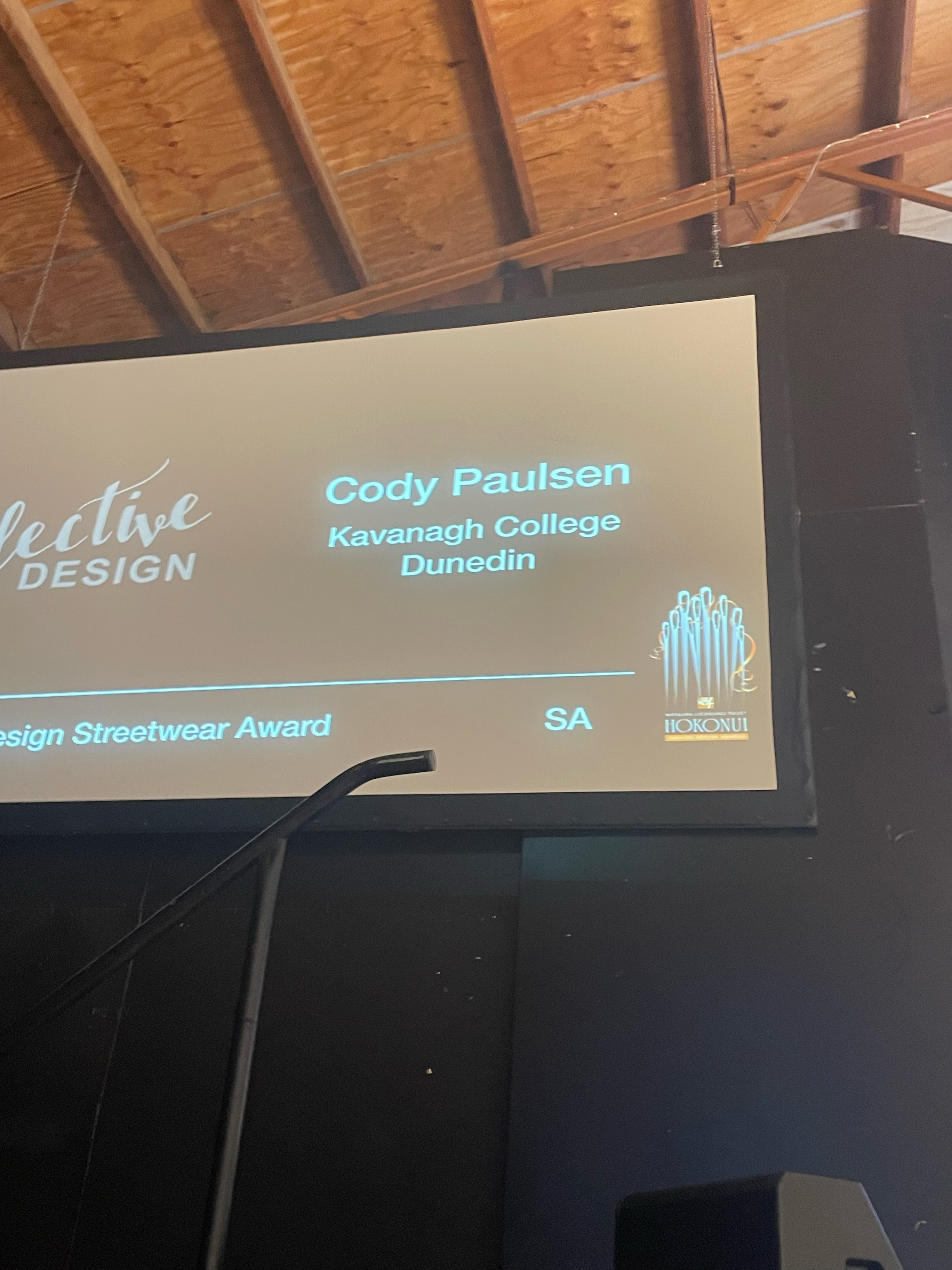 Since then Cody has applied for and been accepted for Massey University Fashion Design course, which is delivered at their Wellington Campus.