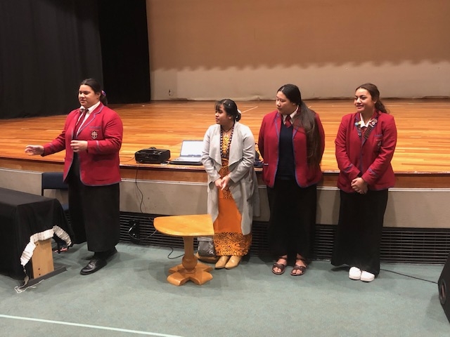 On Wednesday morning, Keisha Su'a, Caramelrose Tofilau, Melina Lam Cheung and Anita Samasoni came to our staff meeting to teach our staff some helpful words and phrases that we can use in the classroom. At the staff presentation the girls also were brave enough to share personal stories and open our eyes and hearts to the cultural differences. Part of this was sharing important values that they live by, the significance of prayer and family to them all. Having young people brave enough to share with staff the pride they have in their culture, their bilingualism and sharing their deep love of their faith fills us also with pride in them.