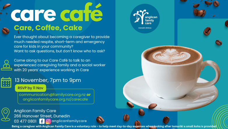 Anglican Family Care are inviting all interested carers to their Care Café event, coming up on Wednesday 13th November 2024.