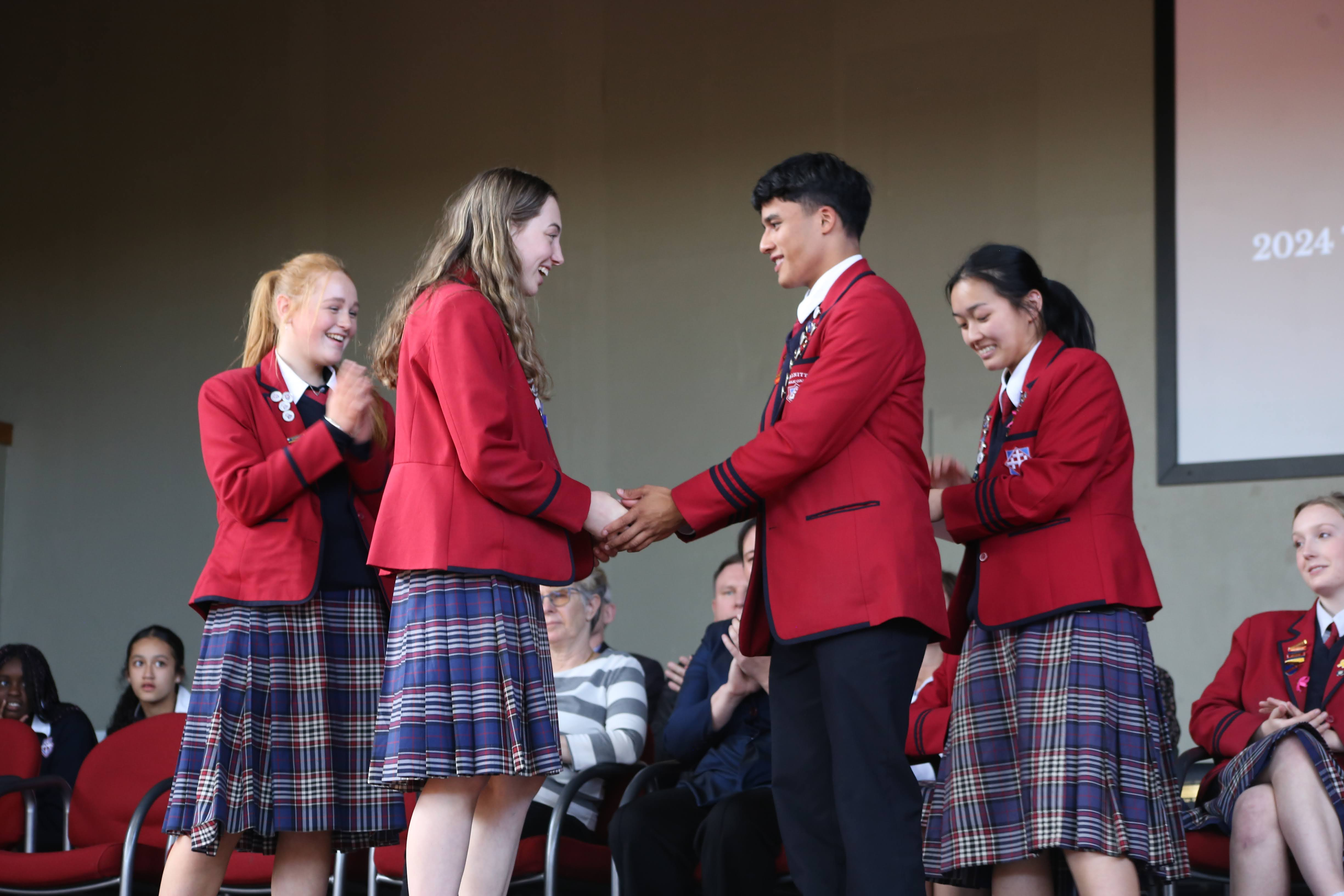 Emotions were high on Tuesday this week as our Trinity College Year 13 Cohort signed off their time at school with a full school assembly. A chance for students and staff to reflect on the year, and to acknowledge the journey of learning seen by our Year 13 students across their time here at Trinity Catholic College. It was also an opportunity to announce the new Head Students for 2025, and for our current leaders to pass on the reigns of responsibility.