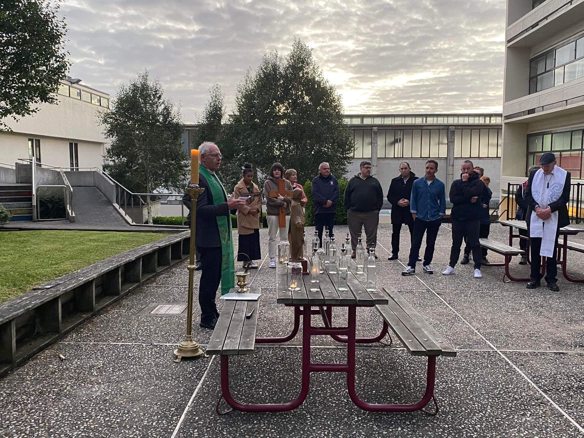After many months transitioning, we are now officially known as Trinity Catholic College. At the very end of the year, a gathering was held to commemorate the 34 years of Kavanagh College. It was a poignant and sad occasion, with Bishop Michael Dooley celebrating Mass followed by a morning tea for those ex-staff and Board members who travelled quite some way to say goodbye to Kavanagh College. Last weekend also carried some sadness as we met before dawn on Saturday morning to acknowledge and reflect upon the reason for our name change, and to symbolically walk with all the survivors of abuse in the Church as every classroom, office and space was blessed with holy water from Lourdes in France, Wellers Rock (the site of the first Mass in Dunedin) and from Toitū, the stream that runs down Rattray Street.