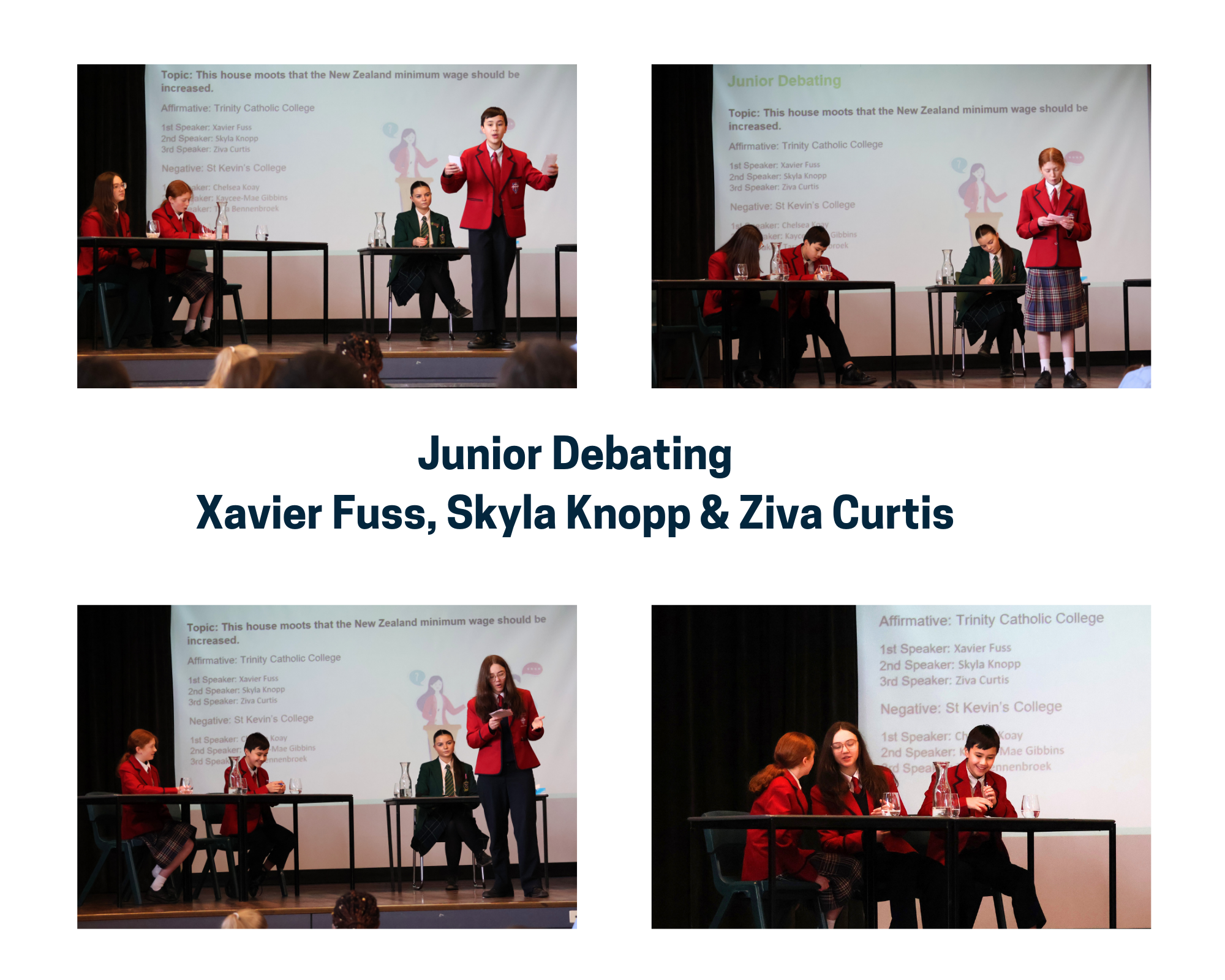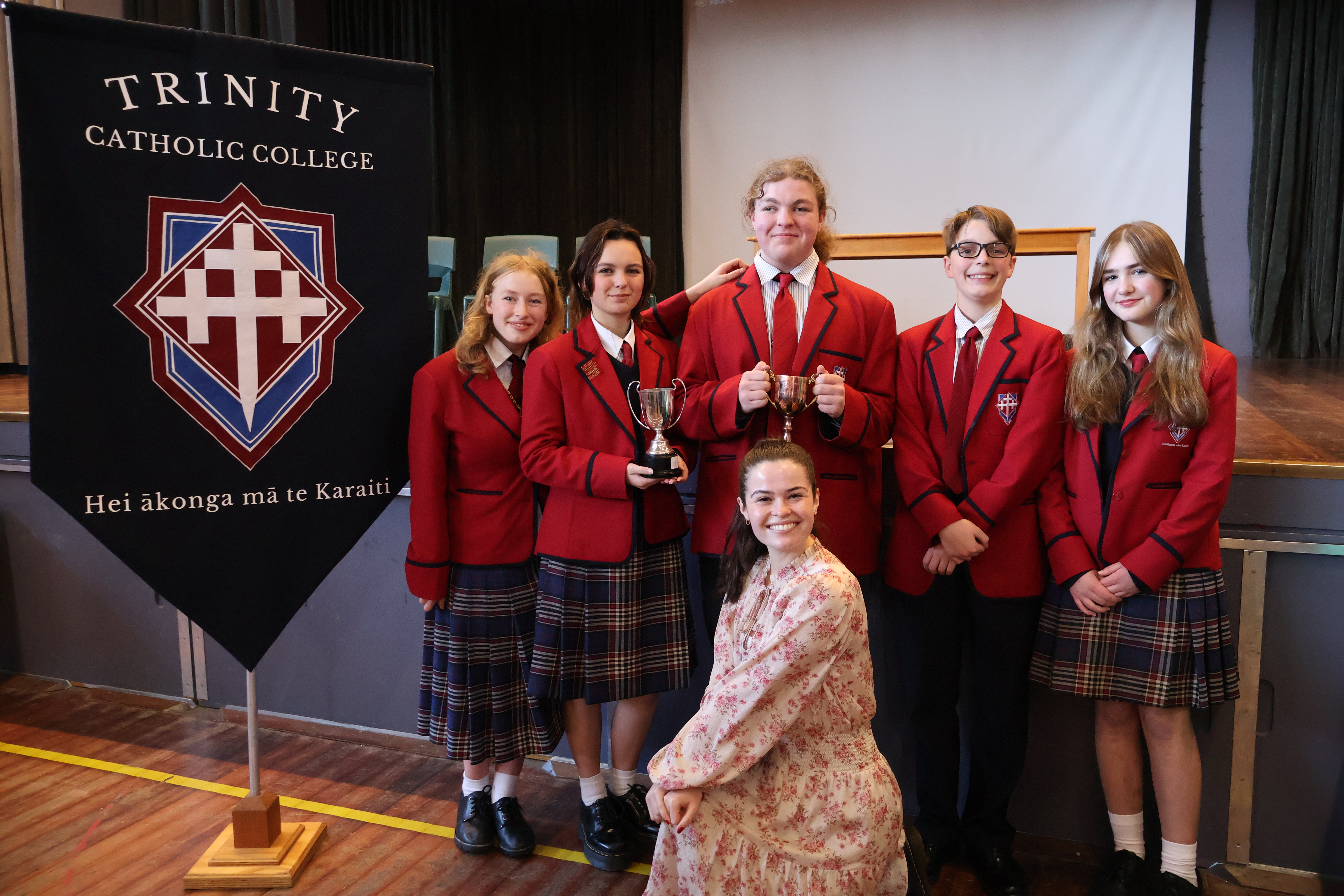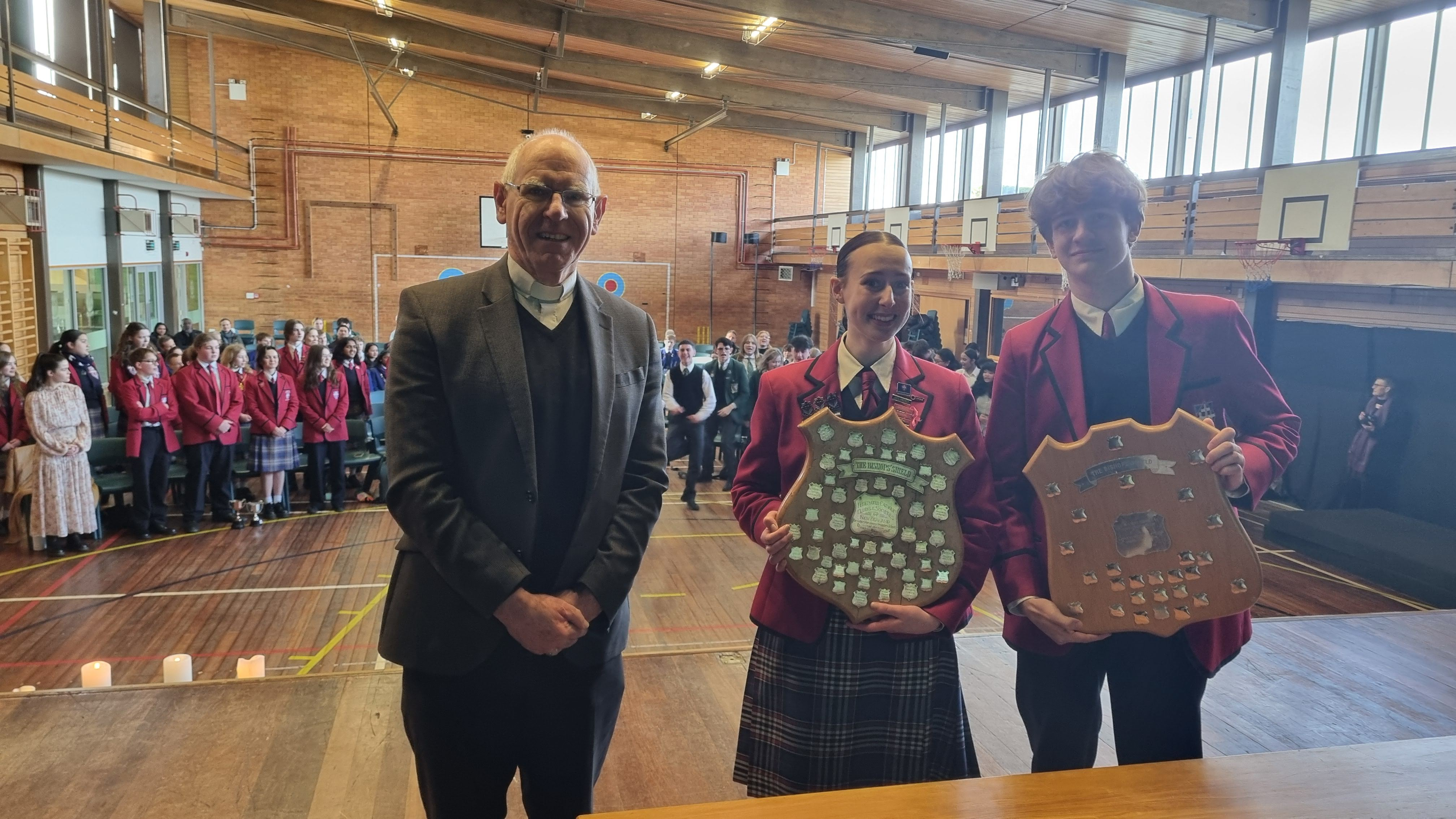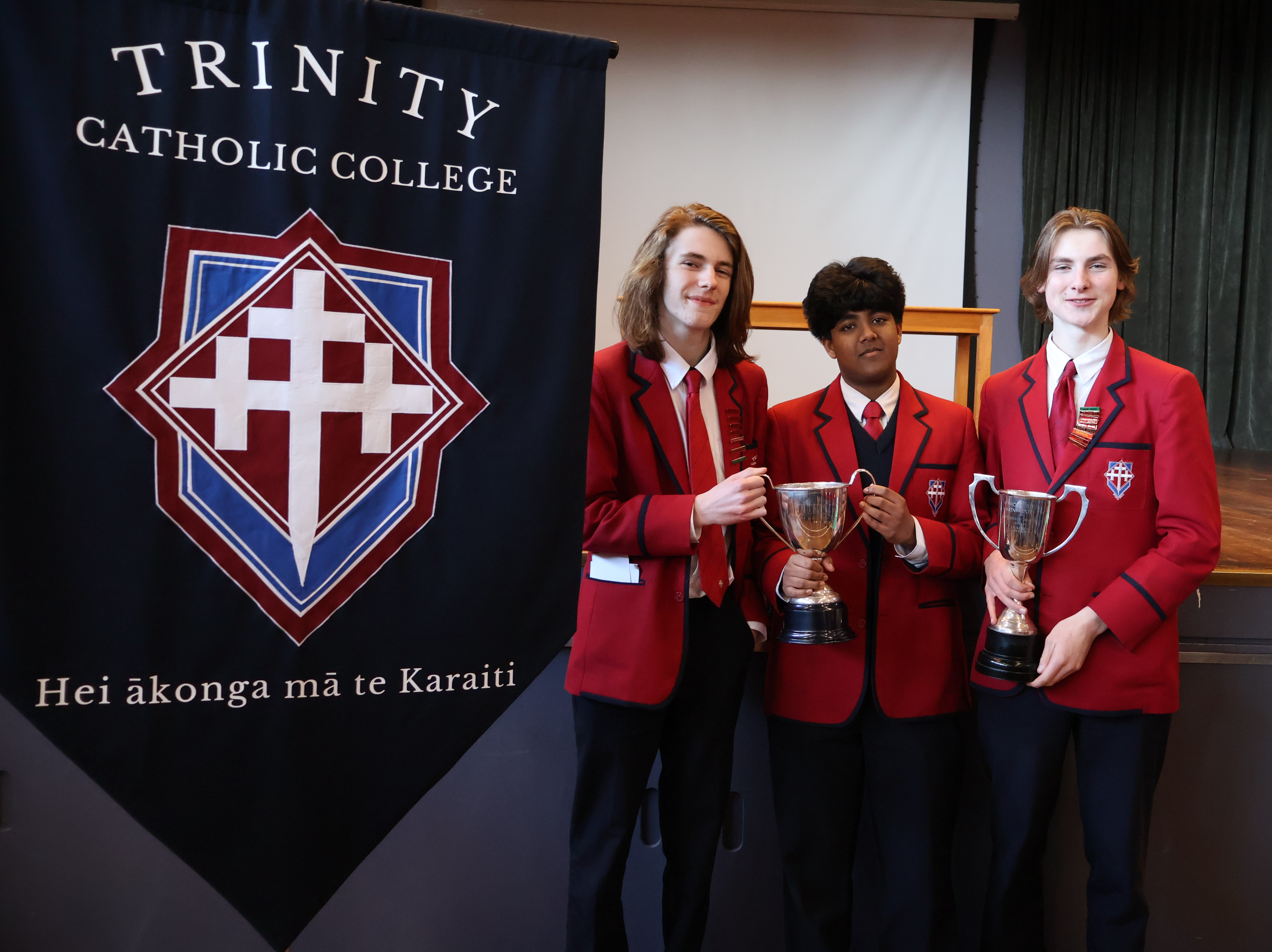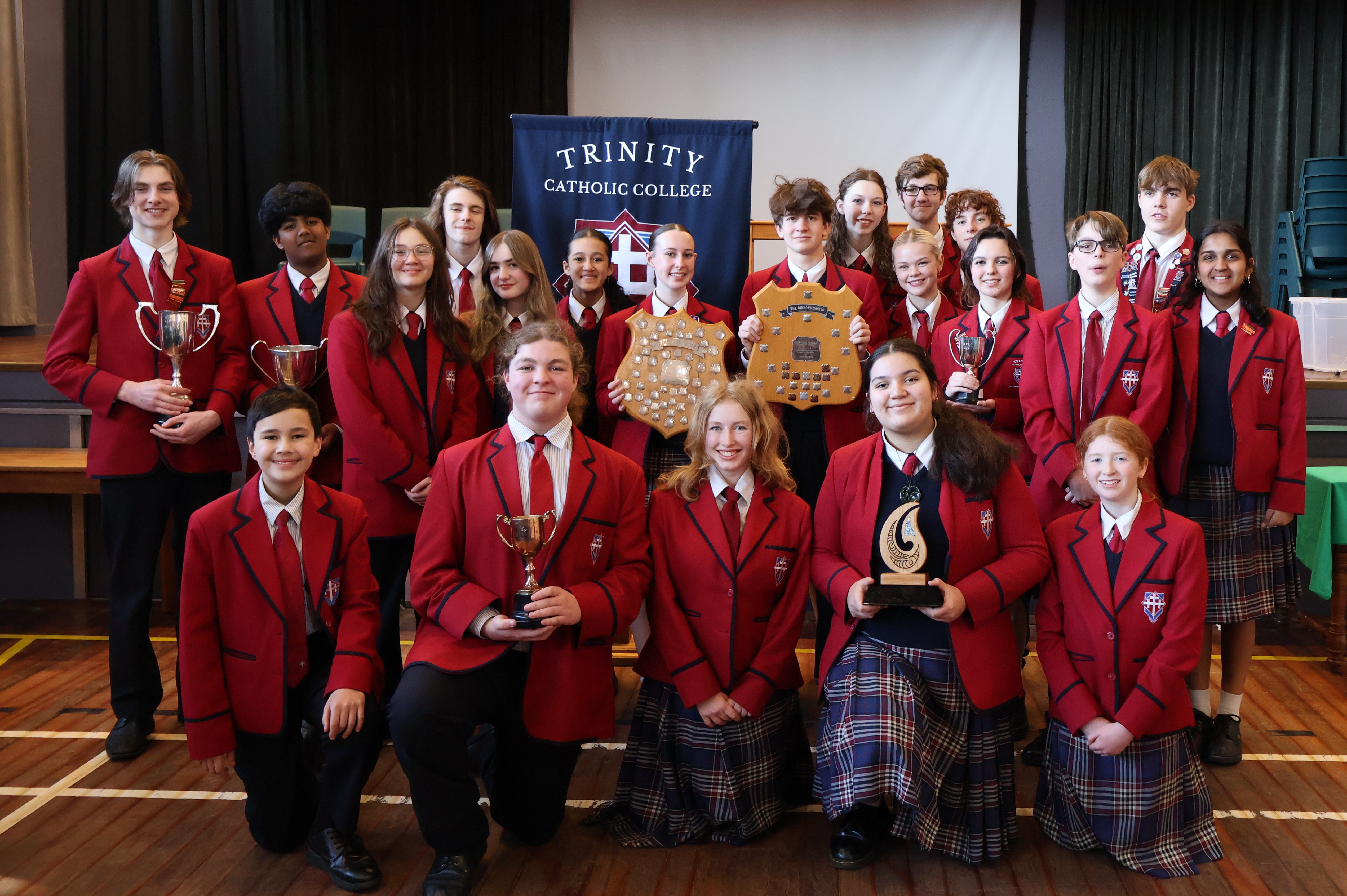 The Bishop’s Shield brings together the four Catholic high schools in the Dunedin Diocese (Verdon College, St Peter’s College, St Kevin’s College, and Trinity Catholic College) and students from the schools compete against one another in prepared speech, impromptu speech, junior and senior debating, junior and senior drama, and junior and senior scripture. And, for the first time, 2024 also included te reo speeches.