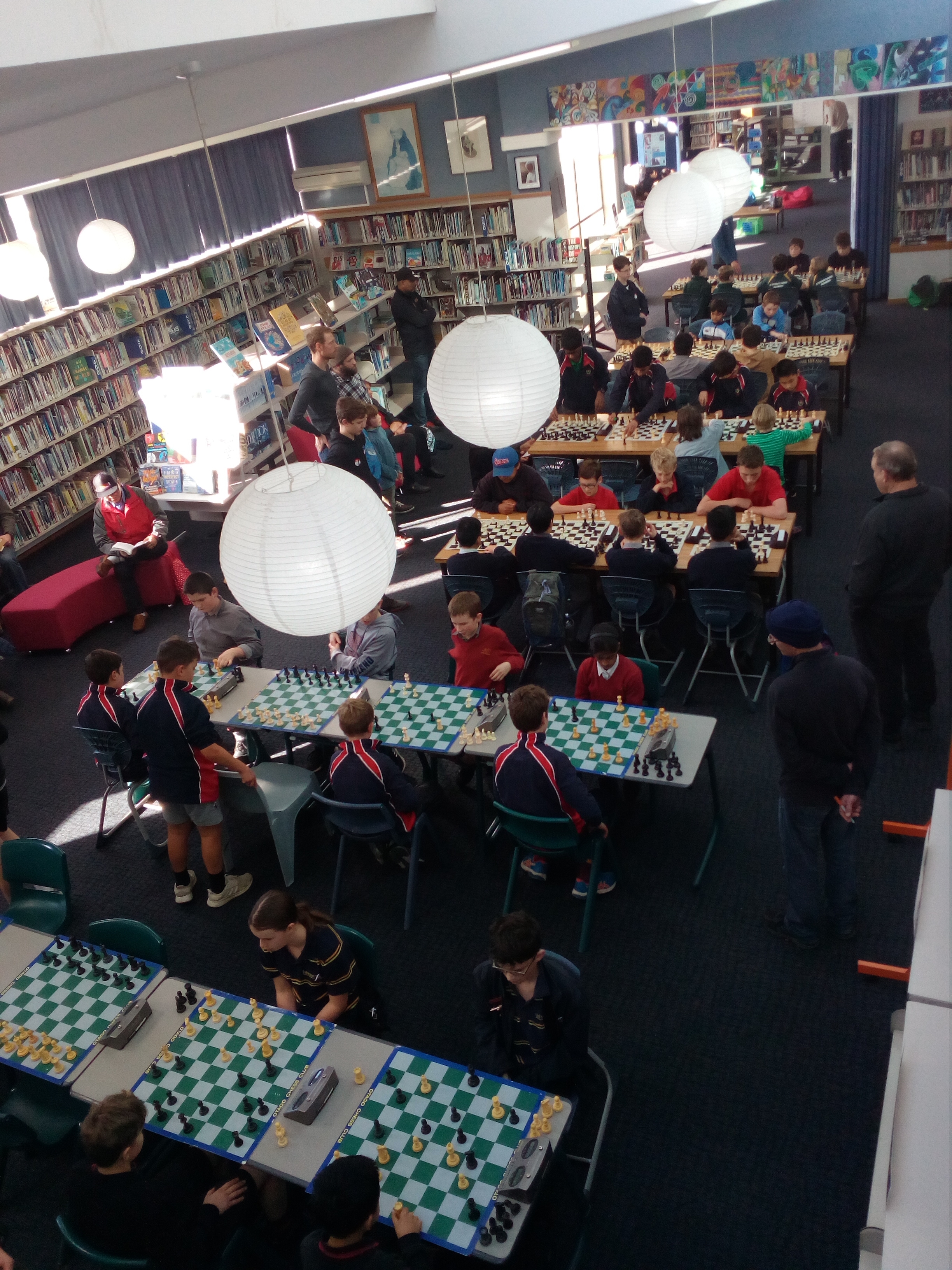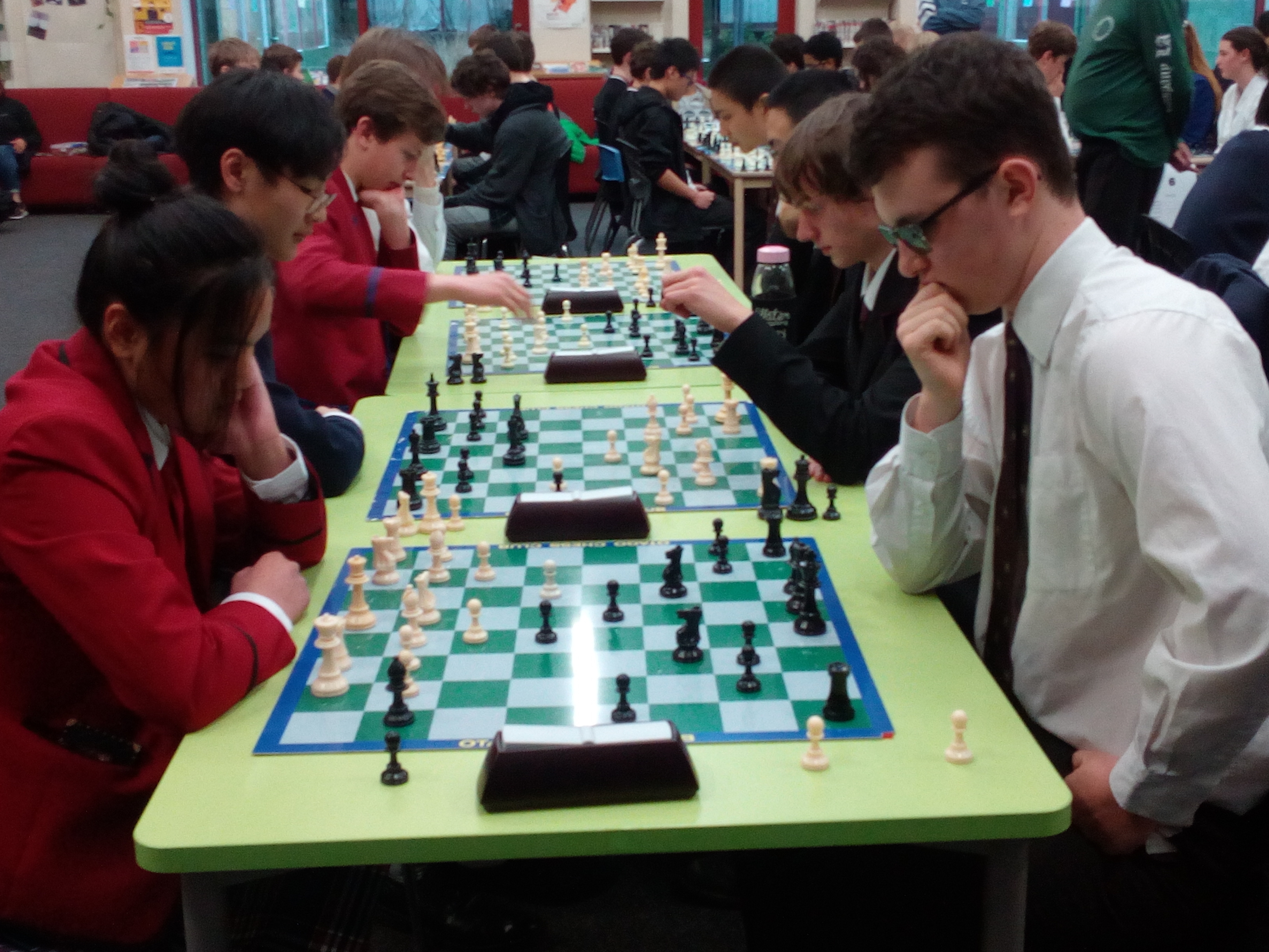 This year's Intermediate championship was held at the Kavanagh College library. Our team-of-four is a mixture of experienced and new players, and they all produced a number of memorable games against some very good opponents. There were a number of epic battles!