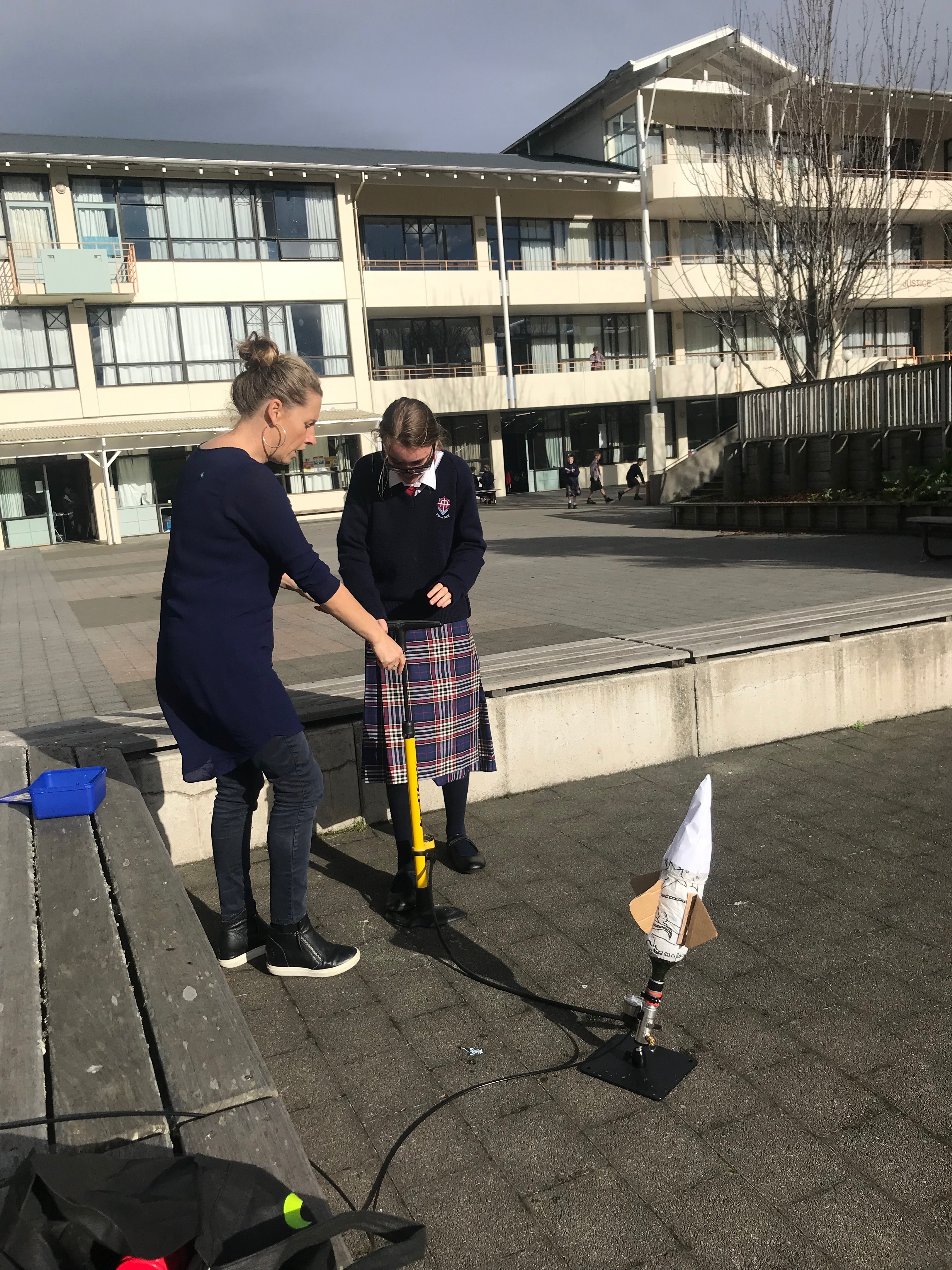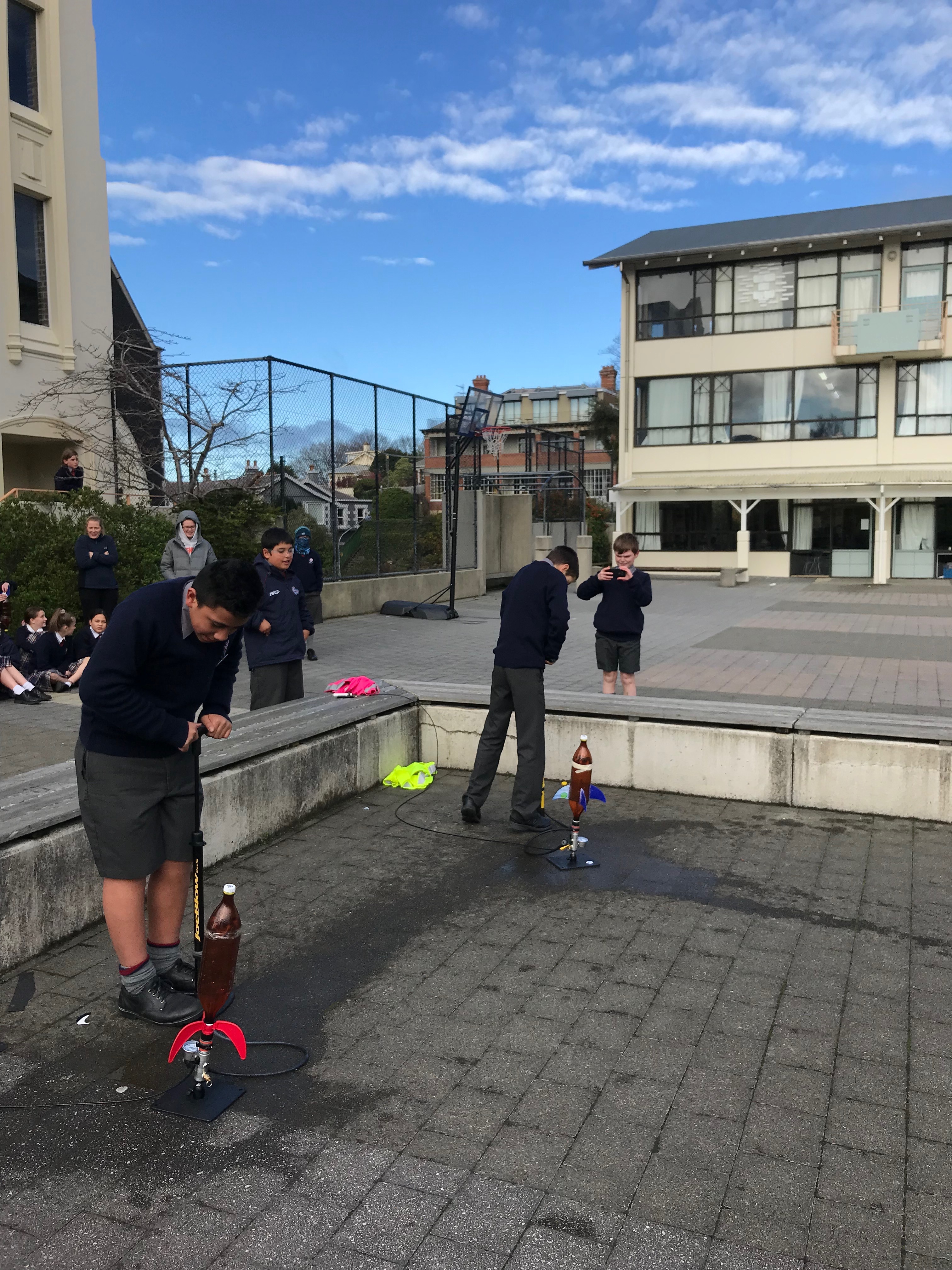 Year 7 students have been working with engineers for five weeks to design water-powered rockets.
