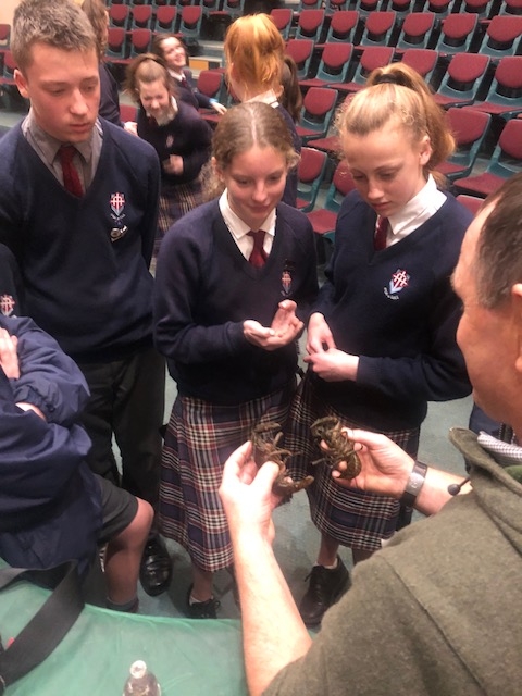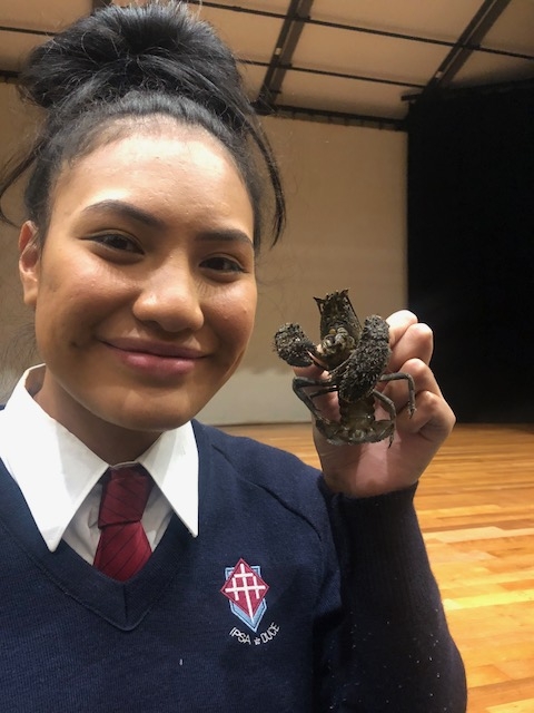 John Hollows from Ernslaw One Ltd (winner of NZ 2017 Outstanding Food Producer Award & 2017 Southland Community Environmental Award) visited the College yesterday and spoke to 80 students. He brought along some cute crayfish which the students thoroughly enjoyed. John is the Aquaculture Manager for the highly successful freshwater crayfish venture which started in ponds in a Southland forest. This venture transformed an unproductive resource into a productive one and has grown considerably. There are now 2,000 registered manmade ponds in New Zealand. John said this ancient species “rule the pools” and are a “tasty treat for trout, eels and birds.” He is passionate about education which focuses on conservation, the environment, and future proofing and is keen to support Agribusiness at Kavanagh College. We are excited about John’s generous offer and look forward to exploring further opportunities for student learning. John told the students how he enjoyed filming with the team from Country Calendar. They had lots of laughs.