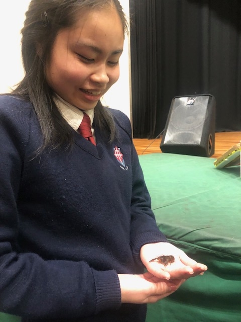 Currently, John is involved with scientific research at the University of Otago exploring ways to reduce the high death rates of baby crayfish. He showed the students a “world-first” close-up photo of a baby crayfish taken at the University.