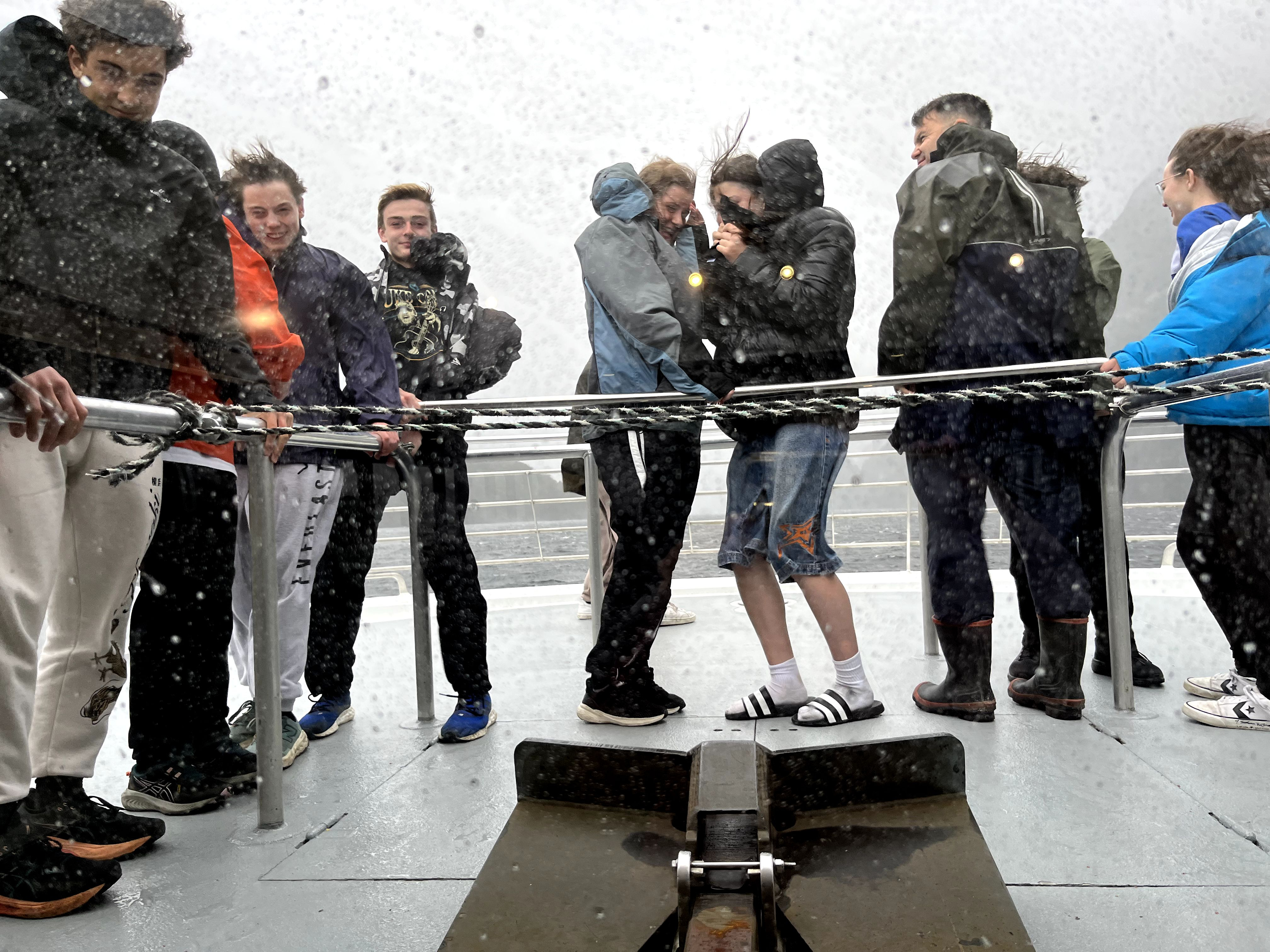 A highlight of the camp is undoubtedly the cruise to the Tasman Sea aboard the MV Pātea Explorer. On Wednesday morning the weather had changed as forecast. The warm sunshine and blue skies had changed to heavy rain and gales - typical Fiordland! The conditions made the experience memorable as the students on the bow deck embraced the wind and rain. Teacher and master chef, Mrs Julie van Rij, took a moody photo of Hall Arm and Commander Peak that you can enjoy in the album below. As we approached the the Tasman Sea, you can feel the power of the ocean with swells building and rolling under the boat. The kekeno/NZ fur seal population on the Nee Islets looked to be healthy and a number of tawaki/Fiordland crested penguins were seen swimming in the channel nearby. On arrival back at the hostel, steak pies, macaroni cheese, beef lasagne (courtesy of the Trinity canteen) were thoroughly enjoyed.