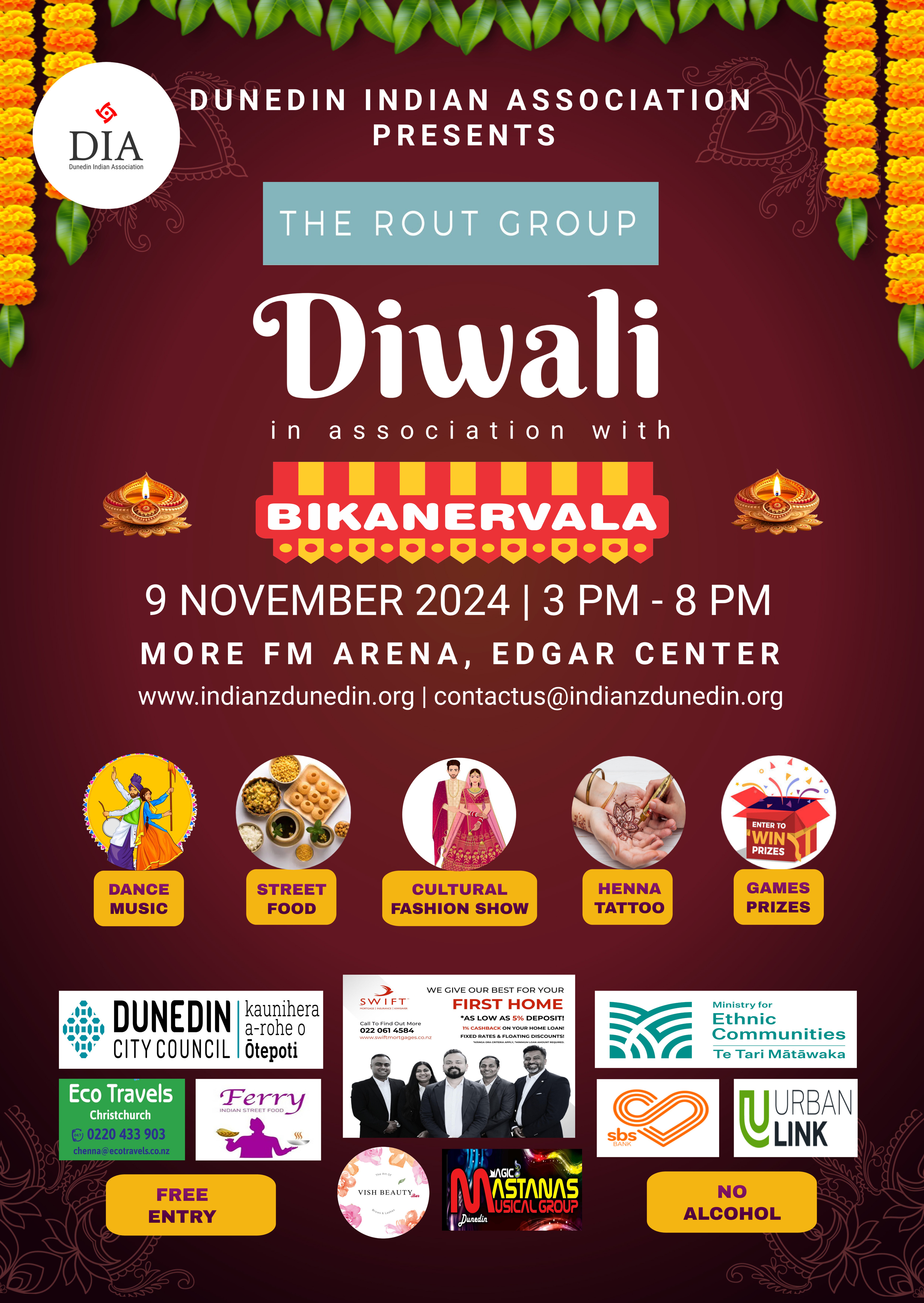 The Dunedin Indian Association extend a warm invitation to the community to attend the 2024 Diwali Festival.