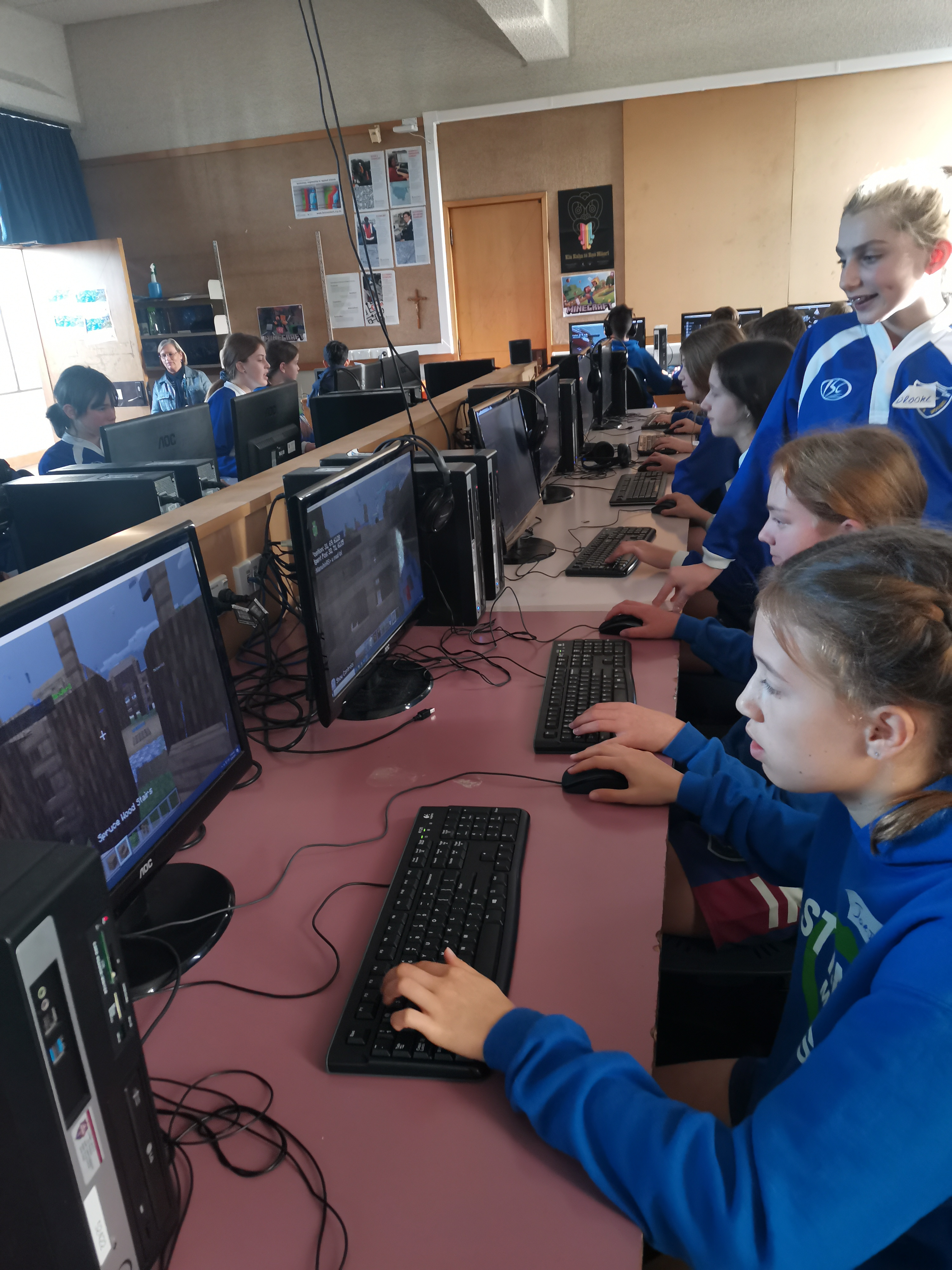 Now back to Kavanagah College and our visitors were given the task of recreating the pā using Minecraft. After organising 'construction' teams, the highly-engaged students began. An hour later the group created a fortified pā, waka on Butterfly Bay, a village and many more authentic features. The group created something very special recreation of the pā, and demonstrated real-world skills such as planning, problem solving, perseverance and collaboration.