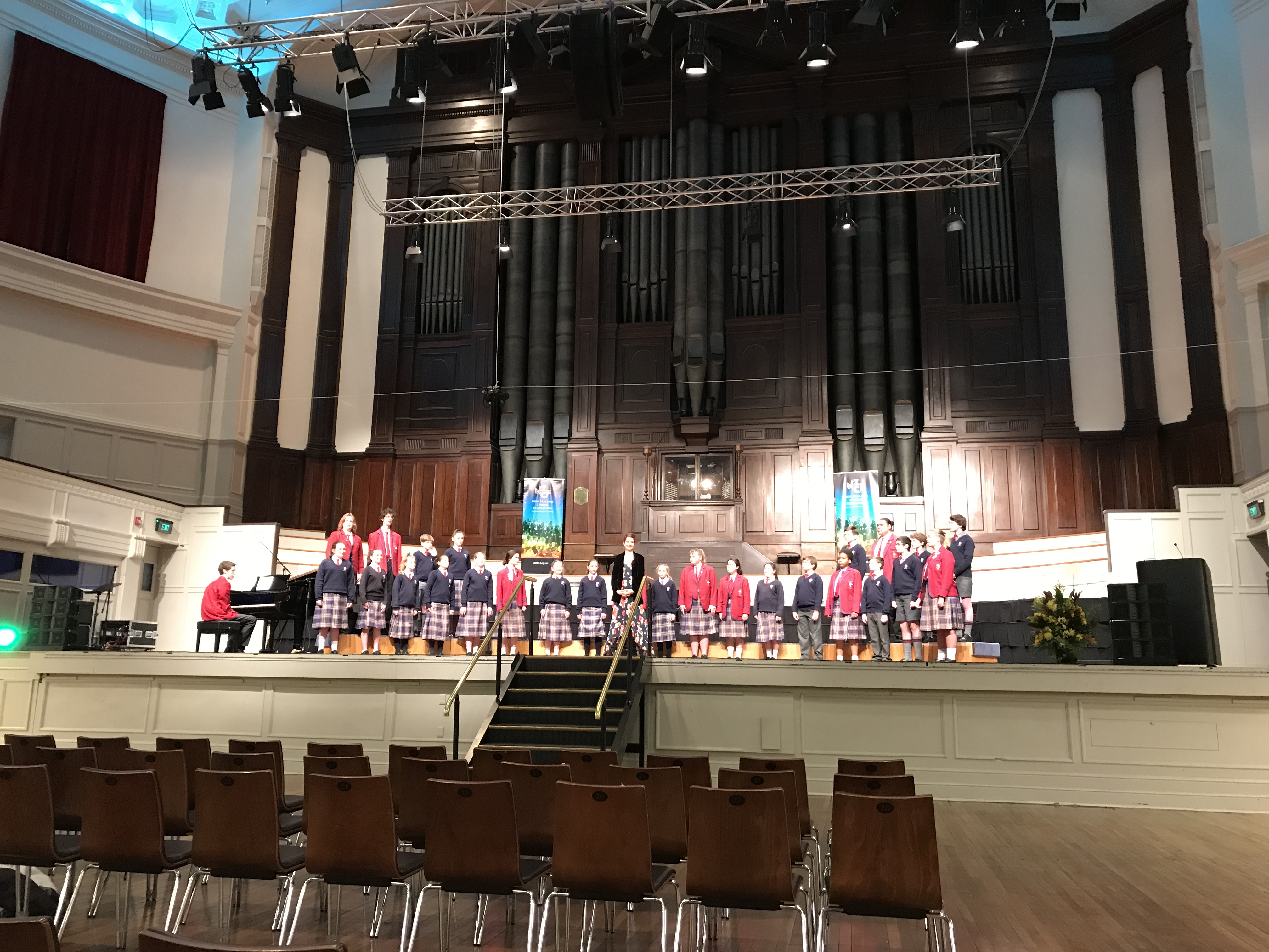 A cold and wintry Wednesday morning saw bright smiles and warm spirit in the Dunedin Town Hall as the Kavanagh College choir (KavCantanti) took to the stage.