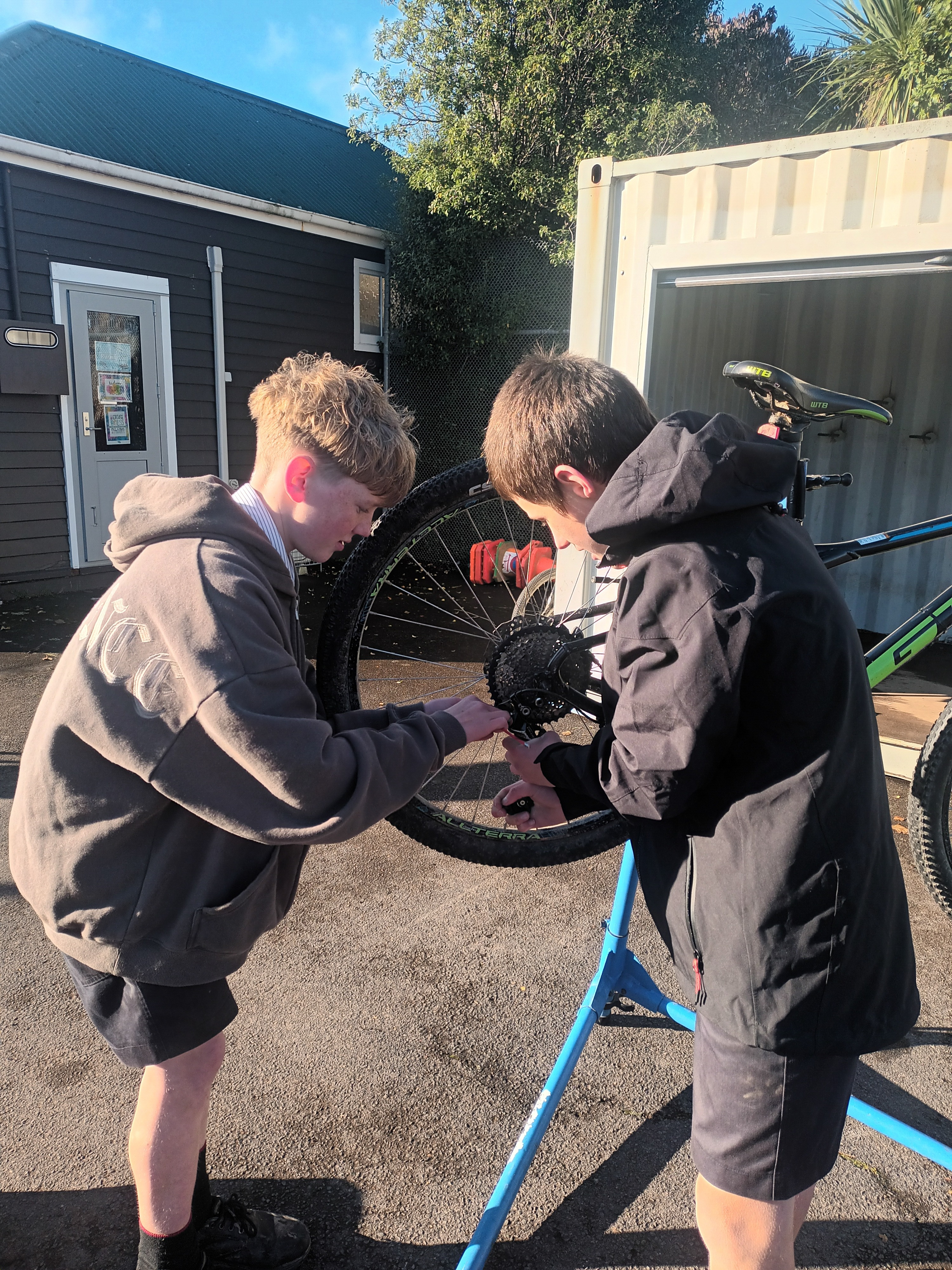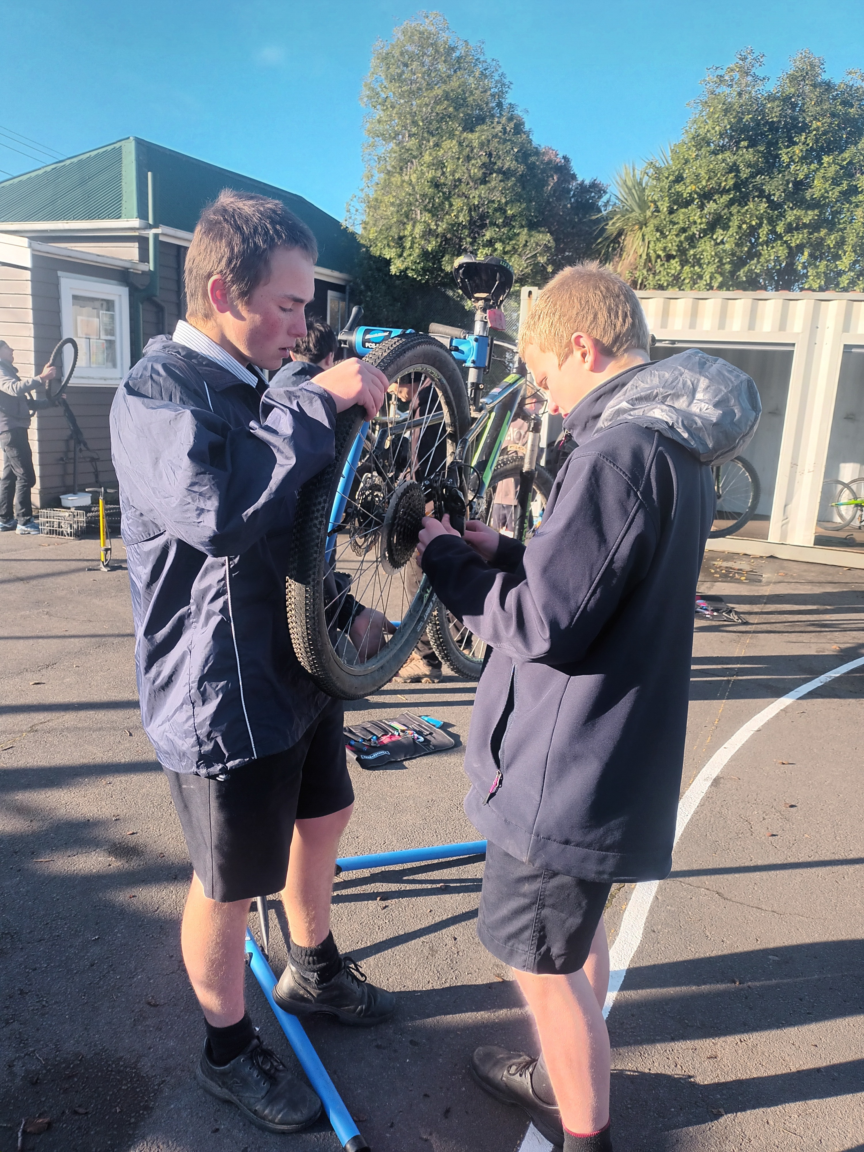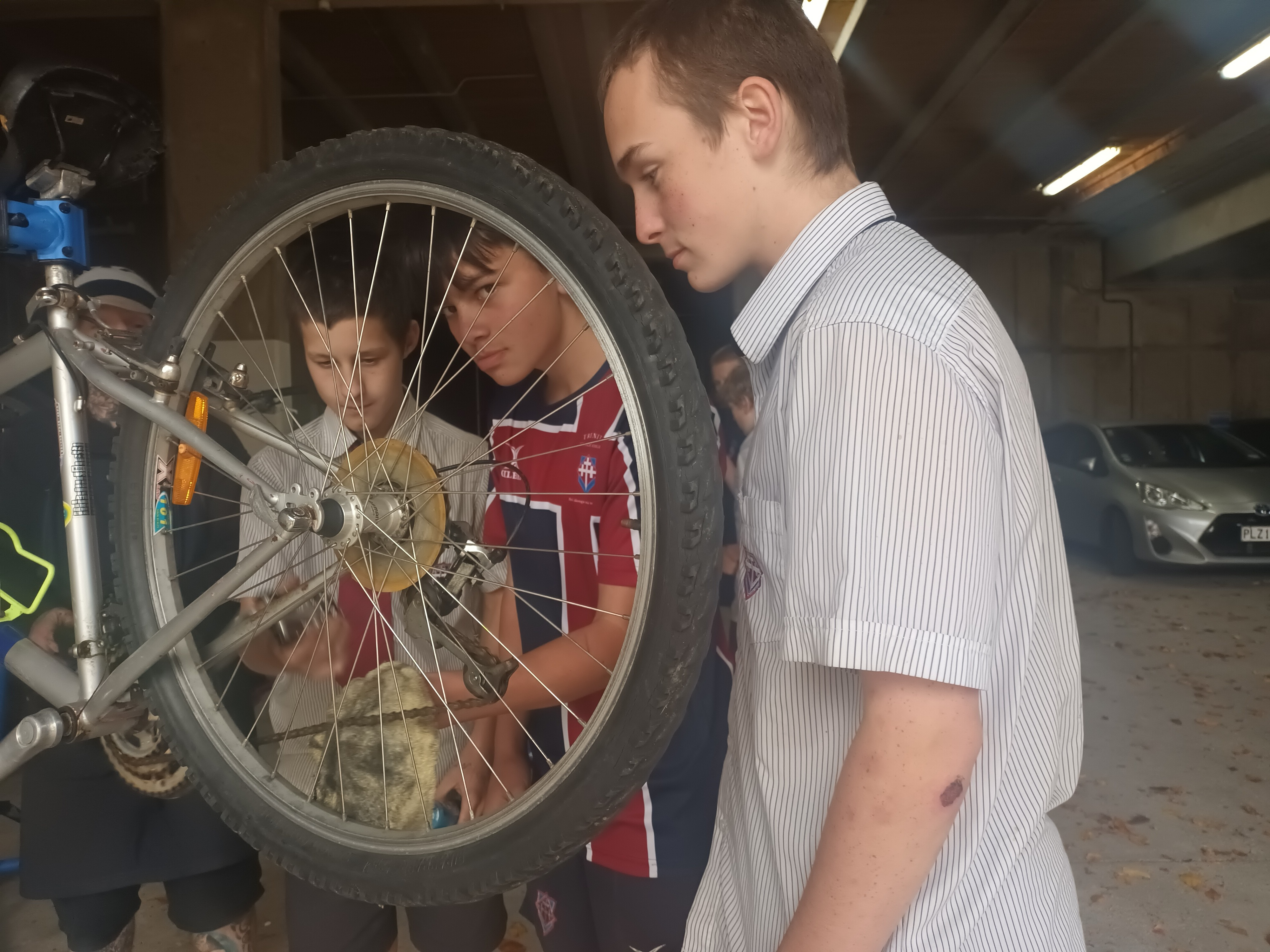 During Term 2, six students have been learning the basics of bicycle mechanics and repair from Southern Youth Development (SYD) experts. Year 10 students Liam Bishop, Devan Black, Eli Bungard, Austin Casey, Harry Hore and Ed Leckie have been repairing breaks, gears, punctures and chains over the last six weeks in the school ‘dungeon’ thanks to SYD’s mobile workshop.